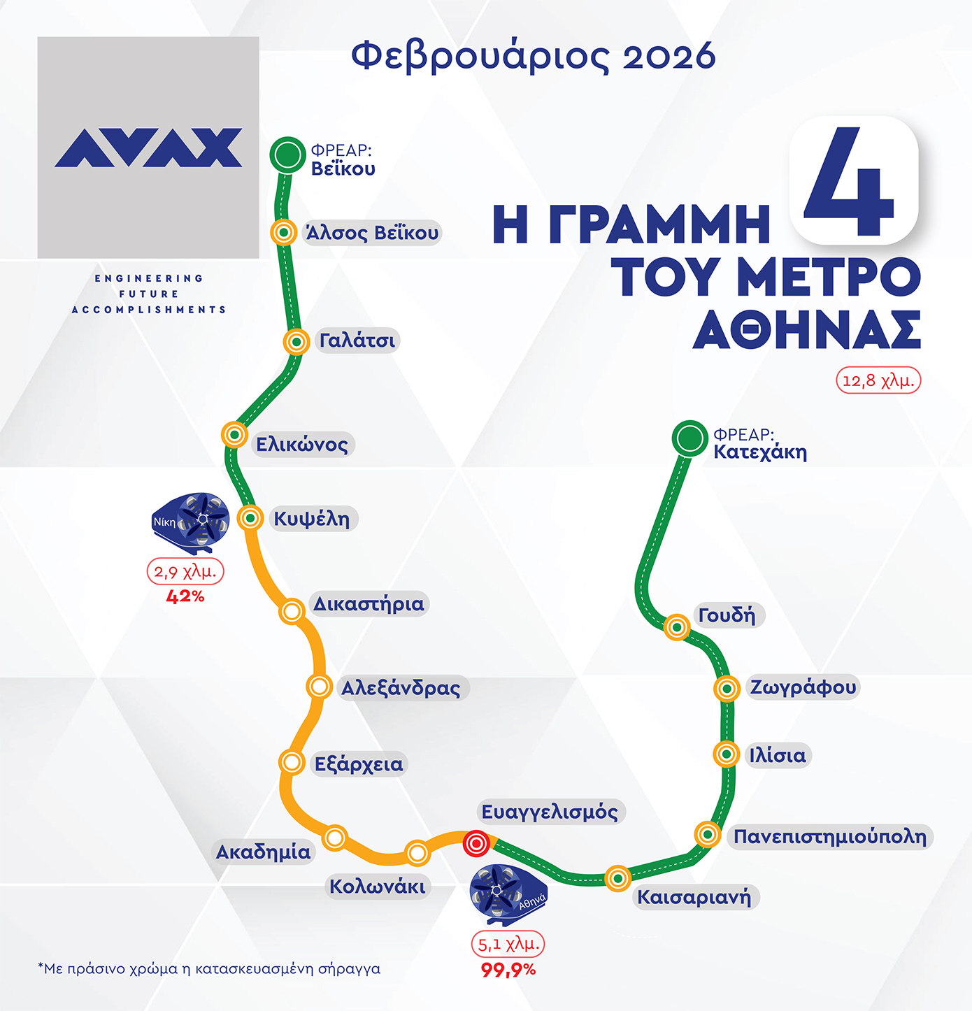 Ο μετροπόντικας πλησιάζει στο σημείο όπου η υπόγεια διαδρομή συναντά ξανά το φως της πόλης και η Γραμμή 4 του Μετρό της Αθήνας περνά σε μια από τις πιο συμβολικές της φάσεις. Κάτω από μερικούς από τους πιο πυκνοκατοικημένους και πολυσύχναστους άξονες της Αθήνας, η σήραγγα Κατεχάκη – Ευαγγελισμός έχει πλέον σχεδόν ολοκληρωθεί, επιβεβαιώνοντας ότι το έργο προχωρά με σταθερό ρυθμό και μετρήσιμα αποτελέσματα.