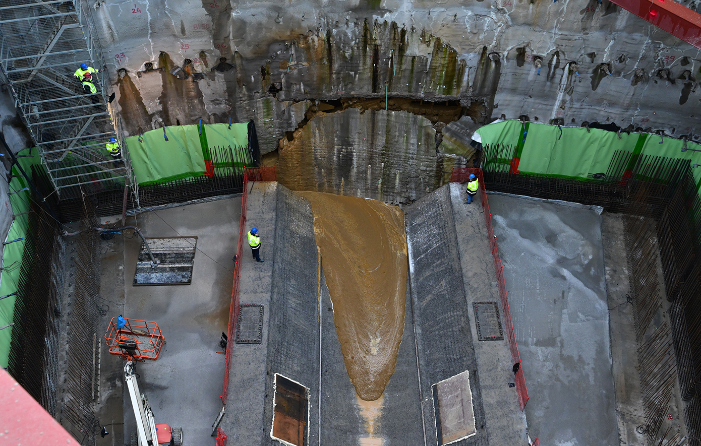 Το περίφημο breakthrough -που έγινε υπό τους ήχους του Break On Through (to the Other Side) των The Doors– σηματοδοτεί την ολοκλήρωση της πρώτης μεγάλης σήραγγας για τη Γραμμή 4 του Μετρό της Αθήνας, με την κεφαλή του μηχανήματος να αποκαλύπτεται μέσα σε κλίμα ενθουσιασμού.