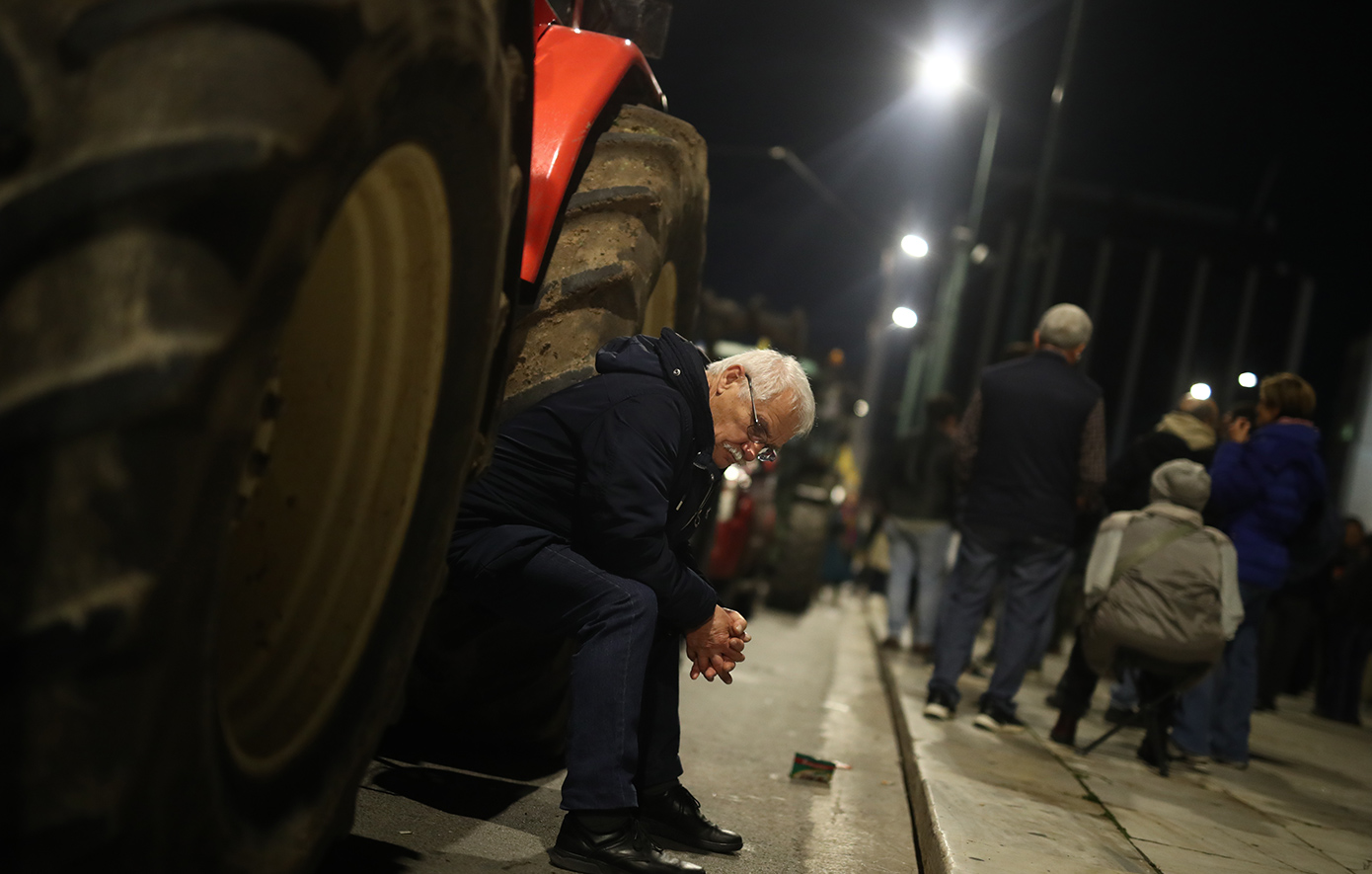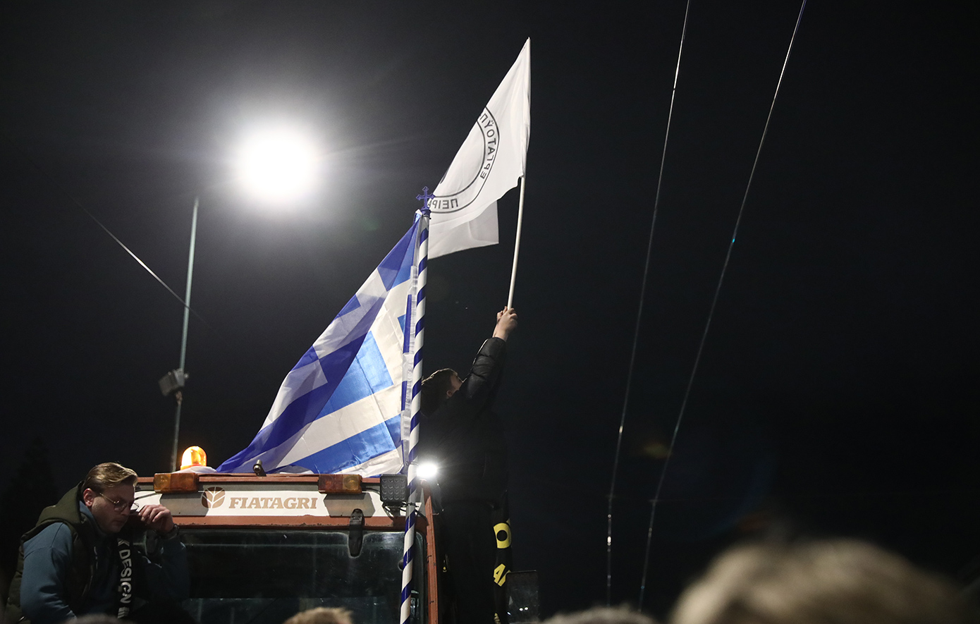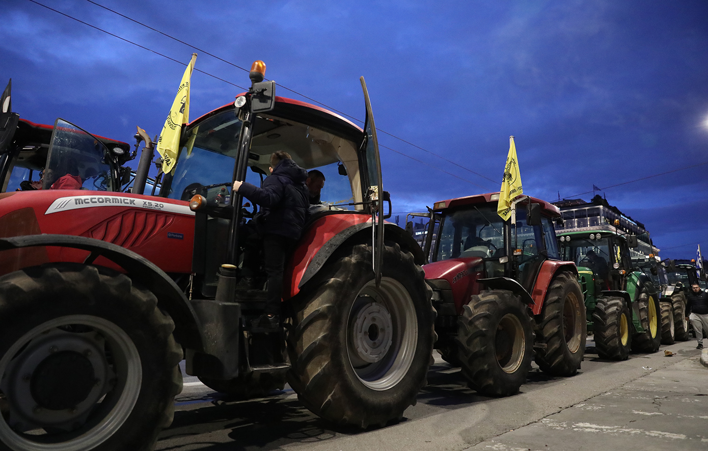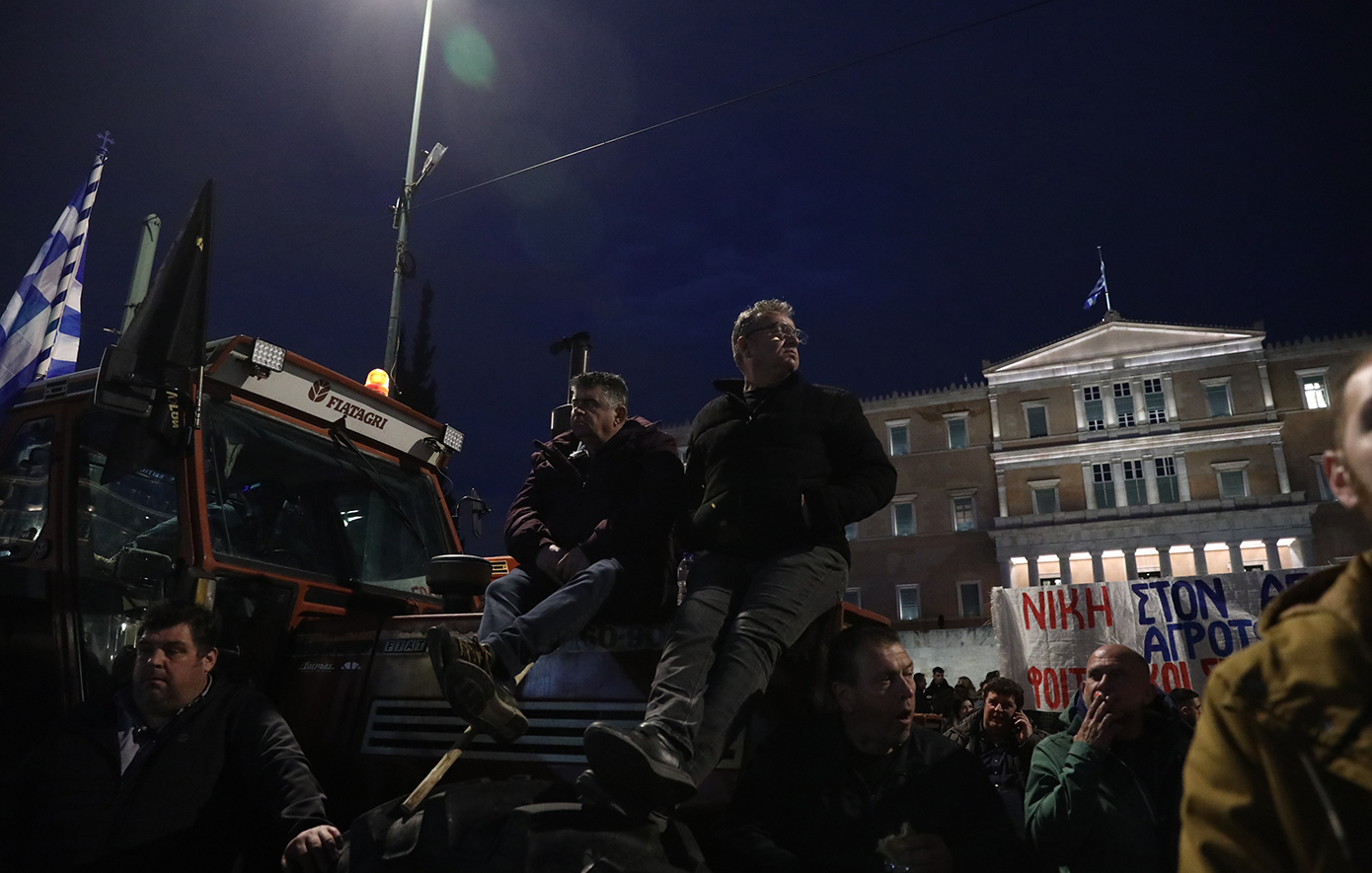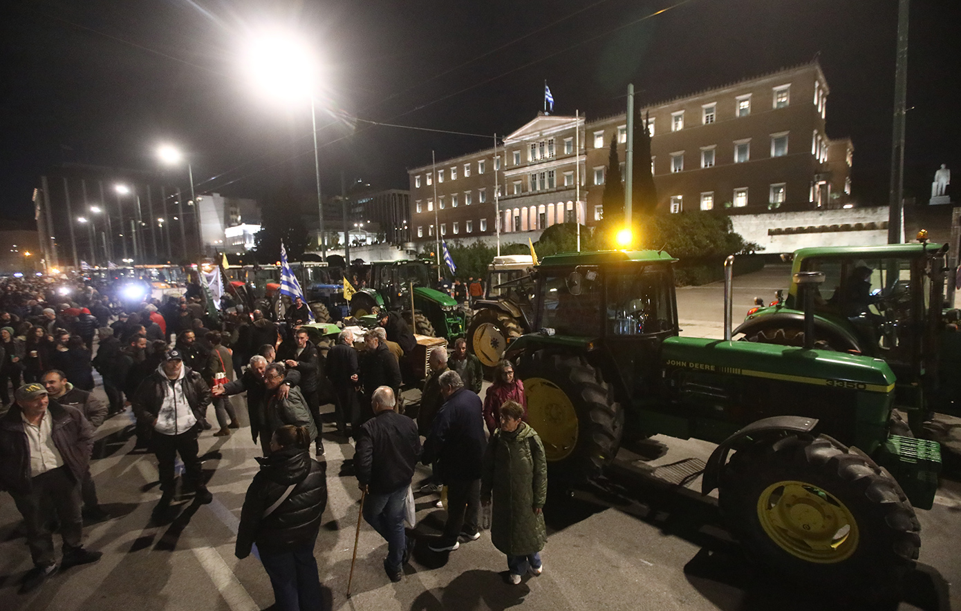 Οι αγρότες δεν κάνουν κανένα βήμα πίσω και πρόκειται να διανυκτερεύσουν έξω από τη Βουλή, έχοντας παρατάξει τα τρακτέρ τους.