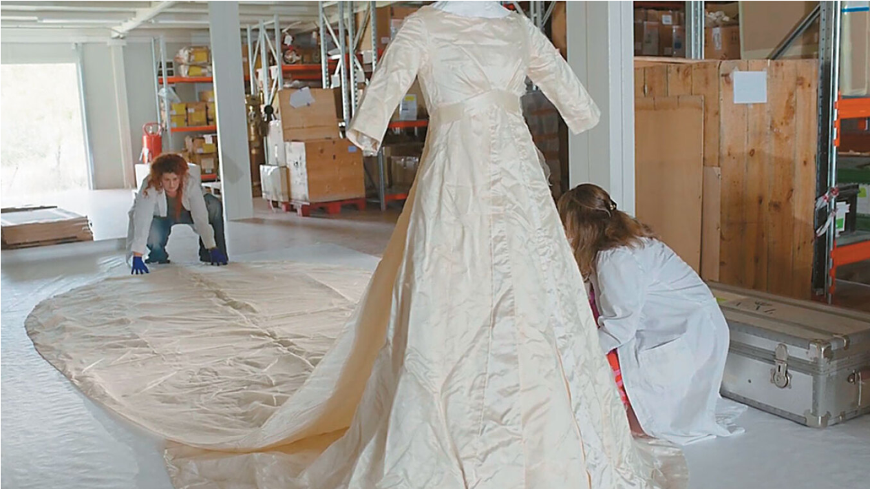 Για δεκαετίες, η τύχη του φορέματος αγνοούνταν. Το νυφικό της Άννας Μαρίας εντοπίστηκε τελικά έπειτα από 59 χρόνια στις αποθήκες του πρώην βασιλικού κτήματος στο Τατόι.