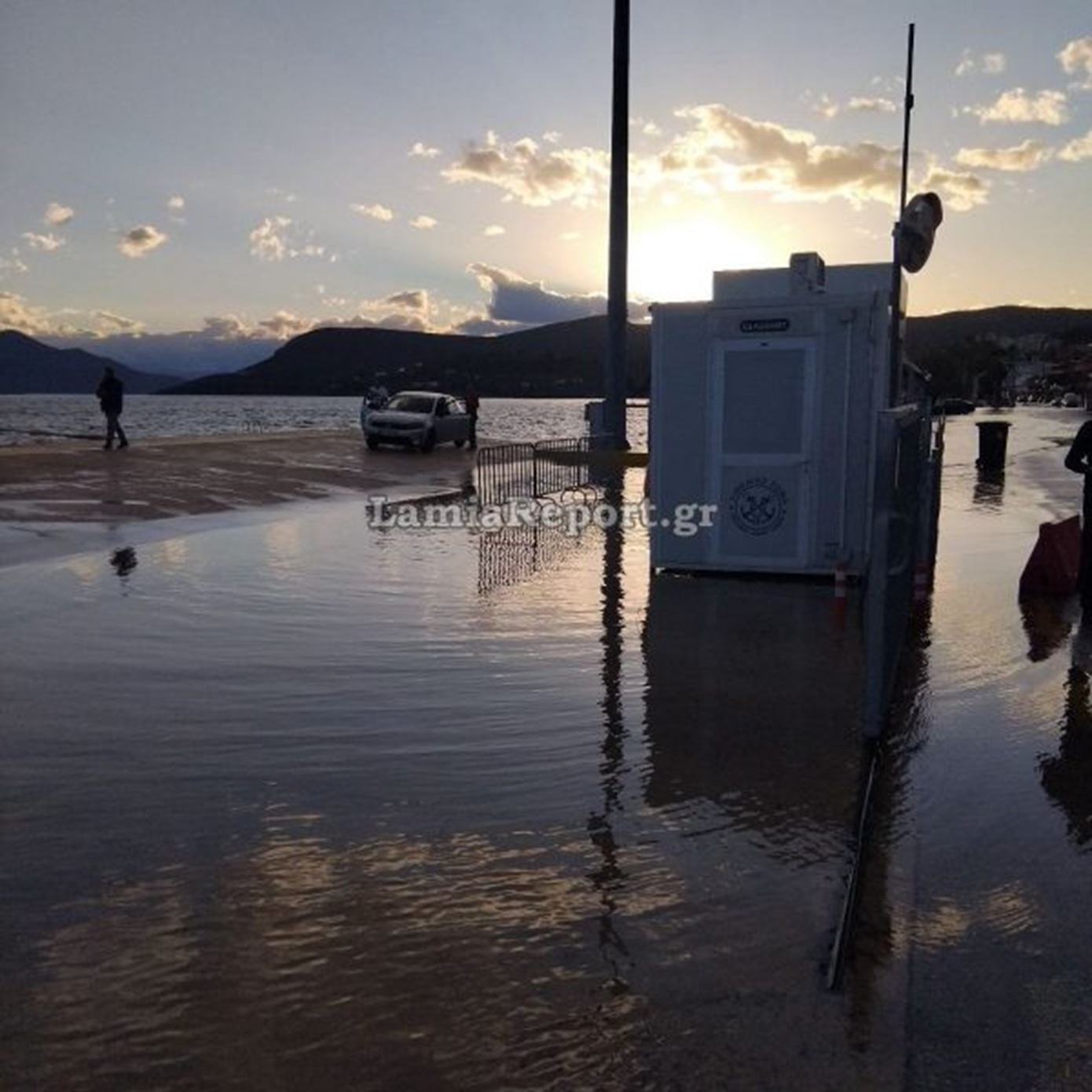 Στις ακτές της Στυλίδας και της Γλύφας, όμως, οι σχεδόν θυελλώδεις άνεμοι είχαν ως αποτέλεσμα η θάλασσα να βγει στη στεριά, όπως μπορείτε να δείτε και στα παρακάτω βίντεο: