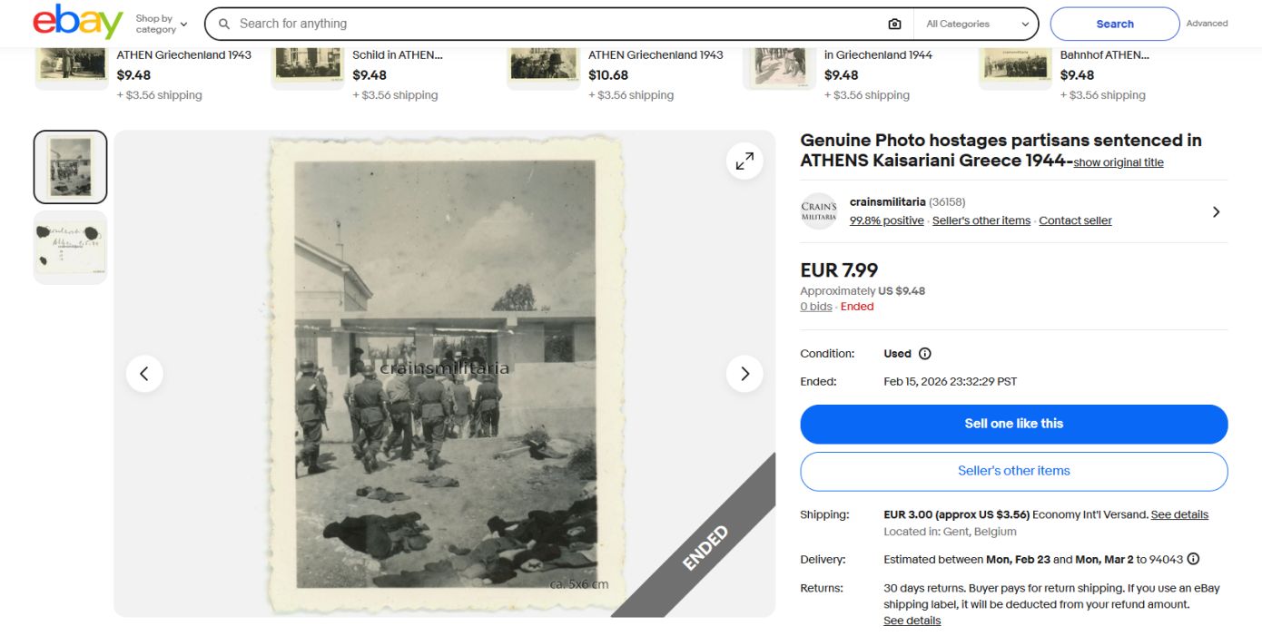 Πάντως, το πρωί της Δευτέρας οι φωτογραφίες φαίνεται πως είχαν «κατέβει» από το eBay και η δημοπρασία είχε σταματήσει.
