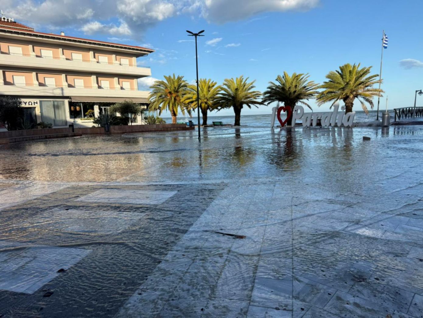 «Οι ζημιές είναι μεγάλες, οι υπηρεσίες μας κάνουν καταγραφή. Ήταν ένα πρωτόγνωρο γεγονός. Η θάλασσα “σηκώθηκε” μισό – ένα μέτρο και βγήκε στη στεριά, χωρίς να φυσάει ή να βρέχει. Πλημμύρισαν πολλά καταλύματα και καταστήματα», δήλωσε στο ΑΠΕ – ΜΠΕ ο δήμαρχος κ. Ντούμος.