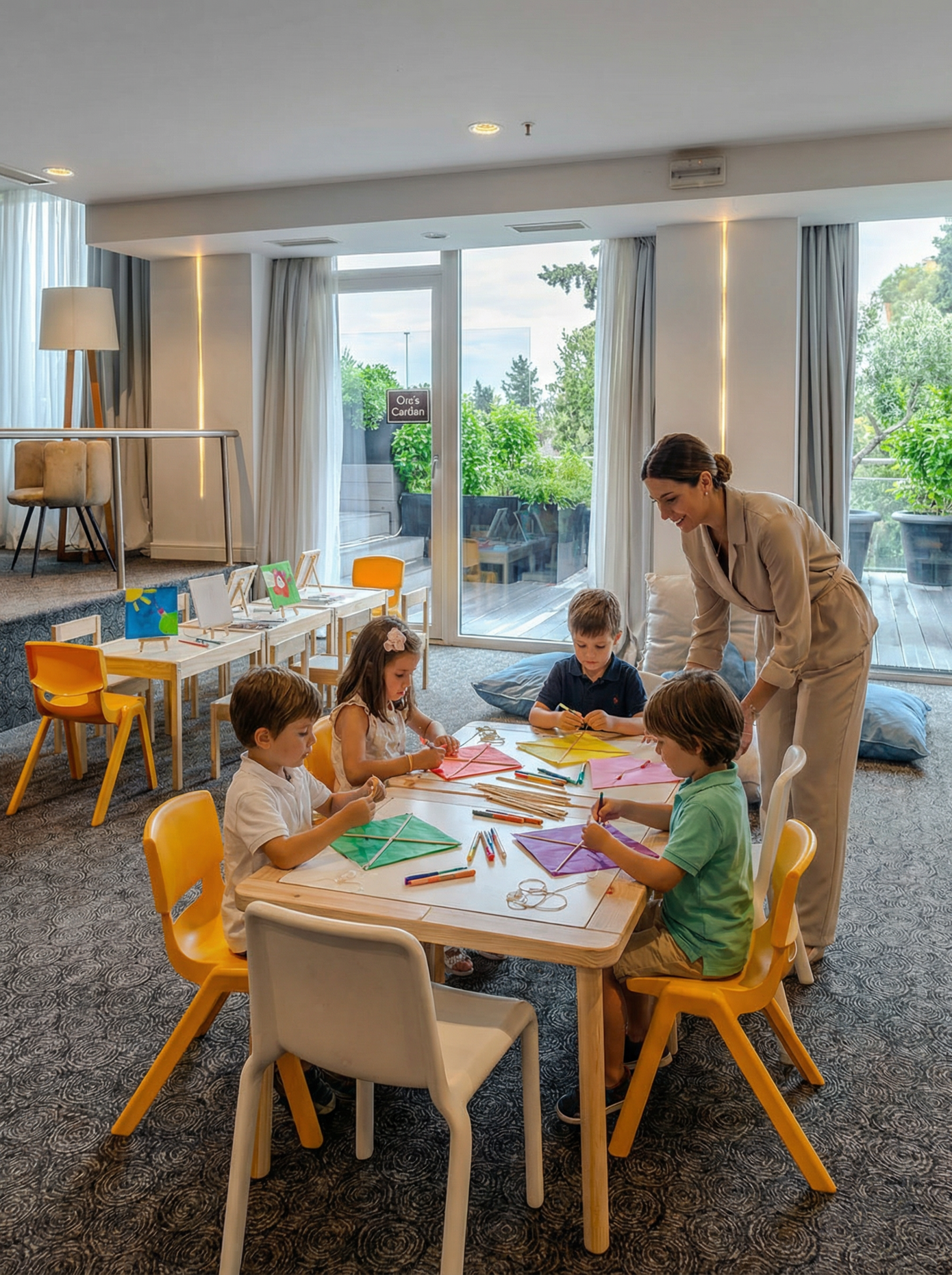 Ενώ για τους μικρούς φίλους του, το οικογενειακό ξενοδοχείο έχει σχεδιάσει μια μοναδική εμπειρία με πολύ παιχνίδι, καθώς παιδαγωγοί-animateurs θα βρίσκονται εκεί για να τους κρατήσουν συντροφιά με δημιουργικές δραστηριότητες, παιχνίδια και εργαστήρι κατασκευής χαρταετών, προσφέροντας ατελείωτη χαρά και διασκέδαση.