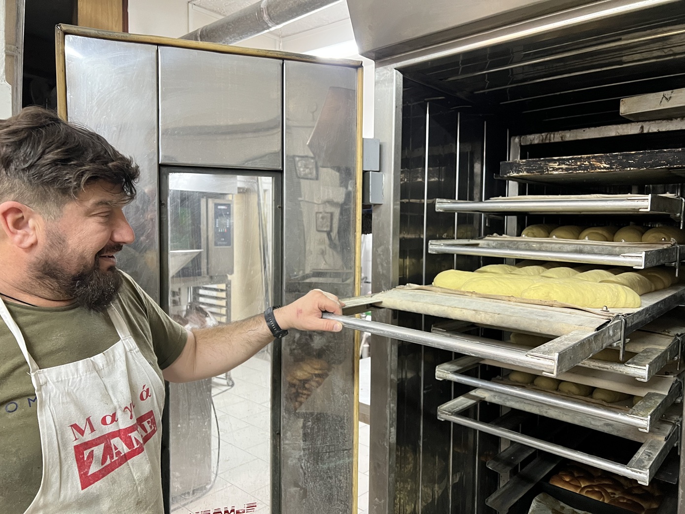 Θα έλεγα γύρω στα τριάντα πέντε χρόνια, μαζί με τον αδελφό μου. Τα τελευταία δεκατρία χρόνια δουλεύω μόνος μου. Και μέσα σε αυτά τα δεκατρία χρόνια φτιάχνουμε και τη λαγάνα «Ντίνος» που την μοιράζουμε σε γνωστούς και φίλους και κρατάμε και για την οικογένεια, εκτός φυσικά από όλη την υπόλοιπη παραγωγή του φούρνου.