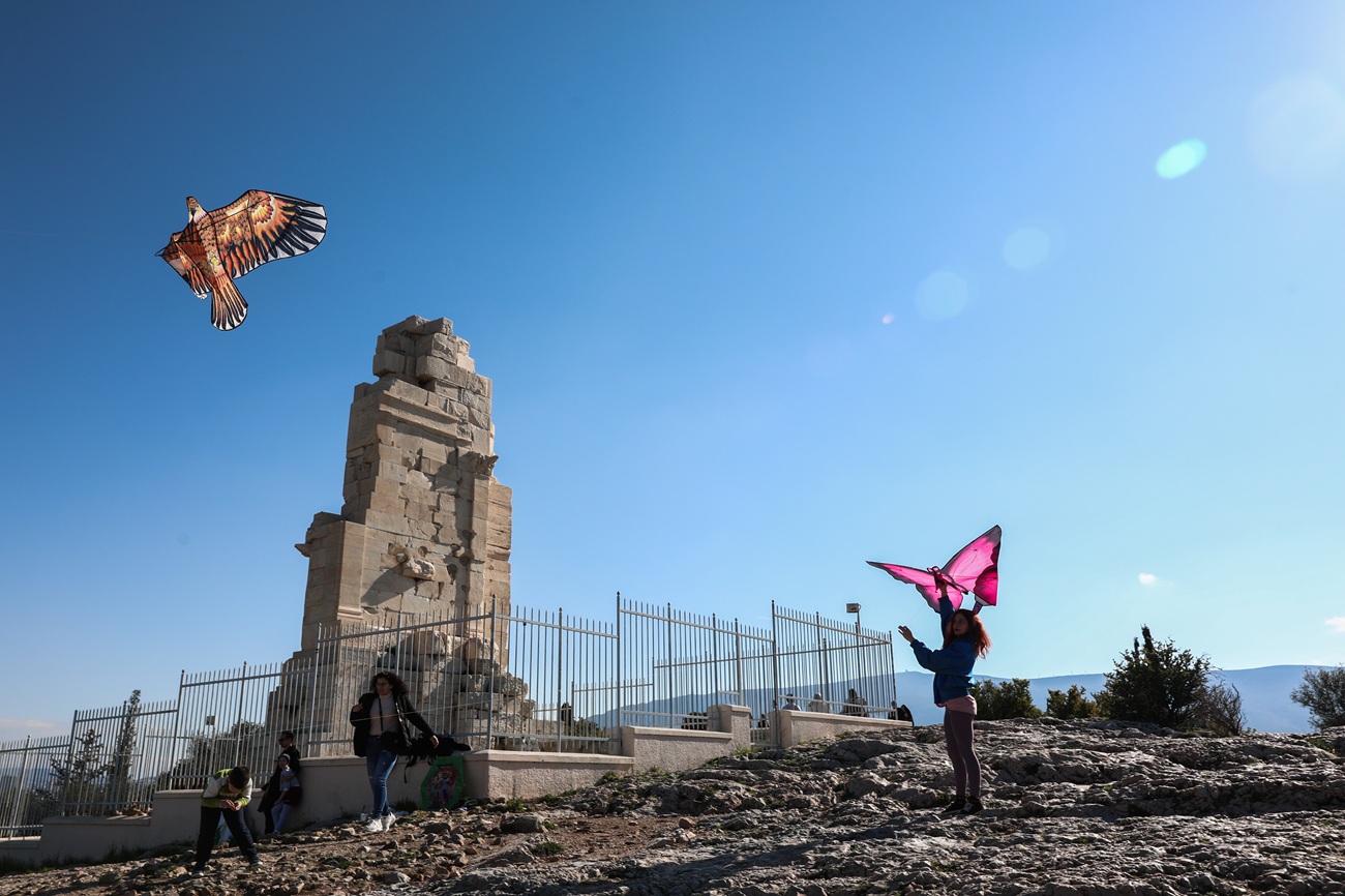 Στο καθιερωμένο εδώ και δεκαετίες σημείο συνάντησης, τον Λόφο Φιλοπάππου, τίμησαν και φέτος την Καθαρά Δευτέρα οι Αθηναίοι και οι Αθηναίες. Από νωρίς το πρωί άρχισε να μαζεύεται πλήθος κόσμου στον ιστορικό λόφο και σύντομα γέμισε με χαρταετούς ο αττικός ουρανός, καθώς βοήθησε και ο καιρός, με τη λιακάδα και το ελαφρύ αεράκι.