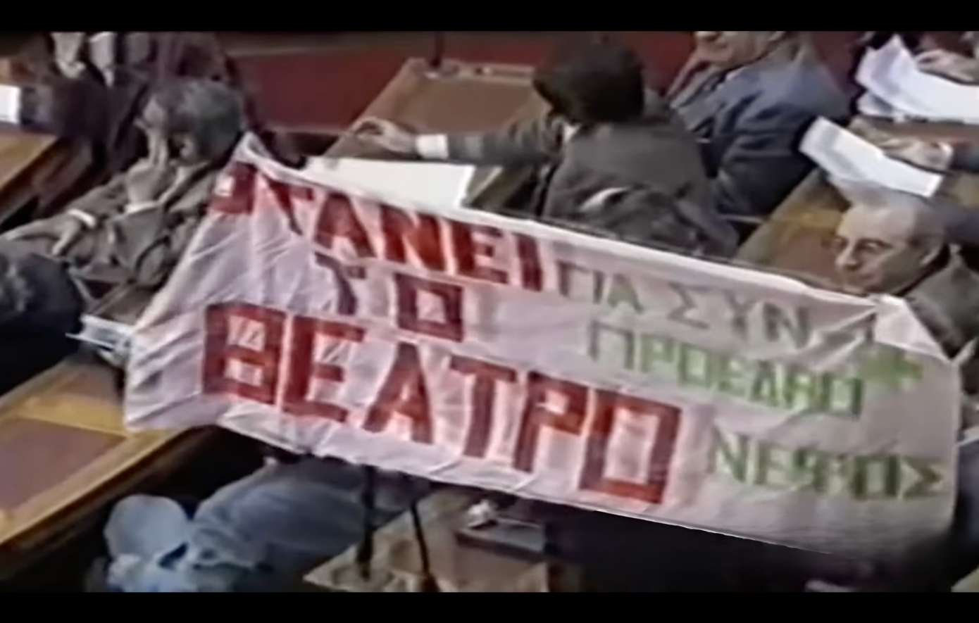 Στις 3 Μαρτίου του 1990, η Άννα Συνοδινού έβαλε οριστικό τέλος στην πολιτική της διαδρομή, αφήνοντας πίσω της μία από τις πιο ηχηρές αποχωρήσεις διαμαρτυρίας που γνώρισε η μεταπολιτευτική Βουλή. Αφορμή στάθηκε το εκρηκτικό κλίμα εκείνης της συνεδρίασης, κατά τη διάρκεια της οποίας η βουλευτής των Οικολόγων – Εναλλακτικών, Μαρίνα Δίζη έβγαλε πανό μέσα στην αίθουσα του Κοινοβουλίου που έγραφε «ΦΤΑΝΕΙ ΤΟ ΘΕΑΤΡΟ για το +1, τον Πρόεδρο και το νέφος» ενώ κόσμος φέρεται να πετάει λουλούδια από τα θεωρεία.