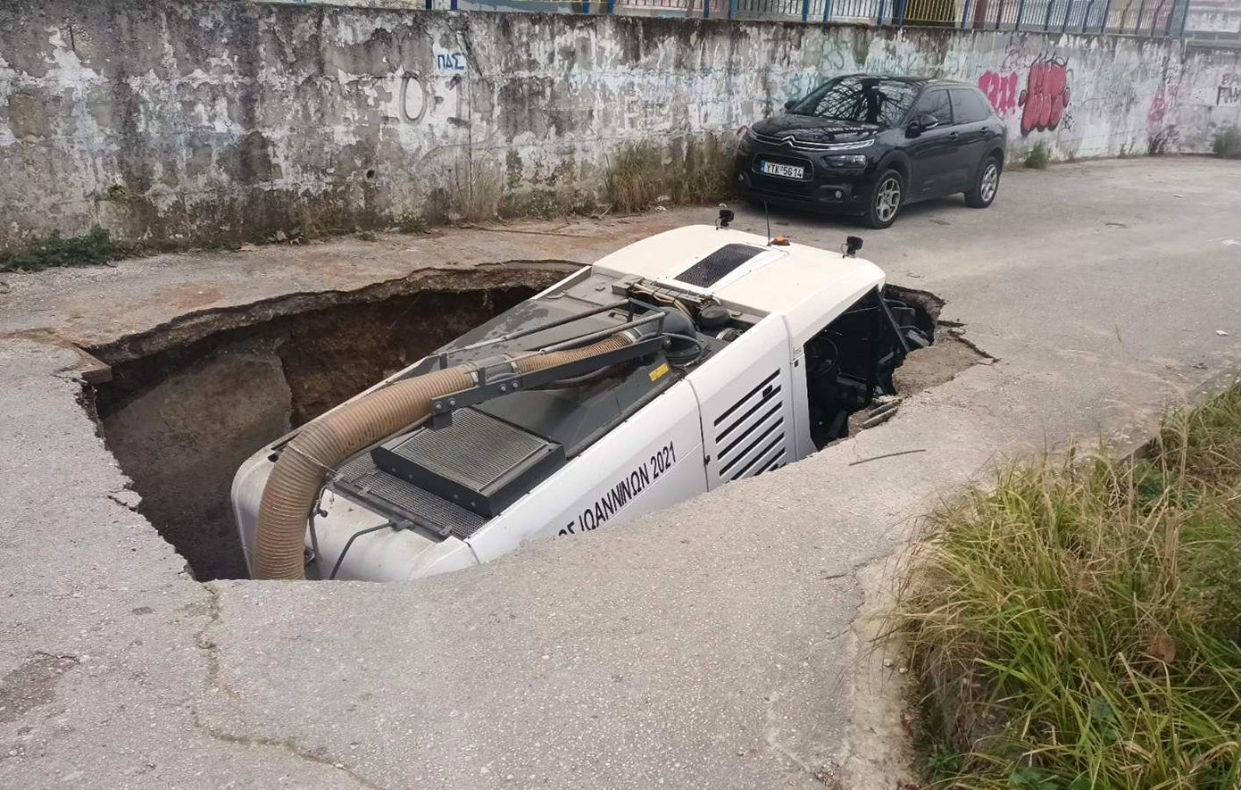 Στο σημείο βρίσκεται ο αρμόδιος αντιδήμαρχος του δήμου Ιωαννίνων και η Τροχαία καθώς, όπως αναφέρει και το epirus-tv-news.gr, μικρό  όχημα καθαριότητας βρέθηκε στο κενό. Από το συμβάν ευτυχώς δεν αναφέρθηκε τραυματισμός.