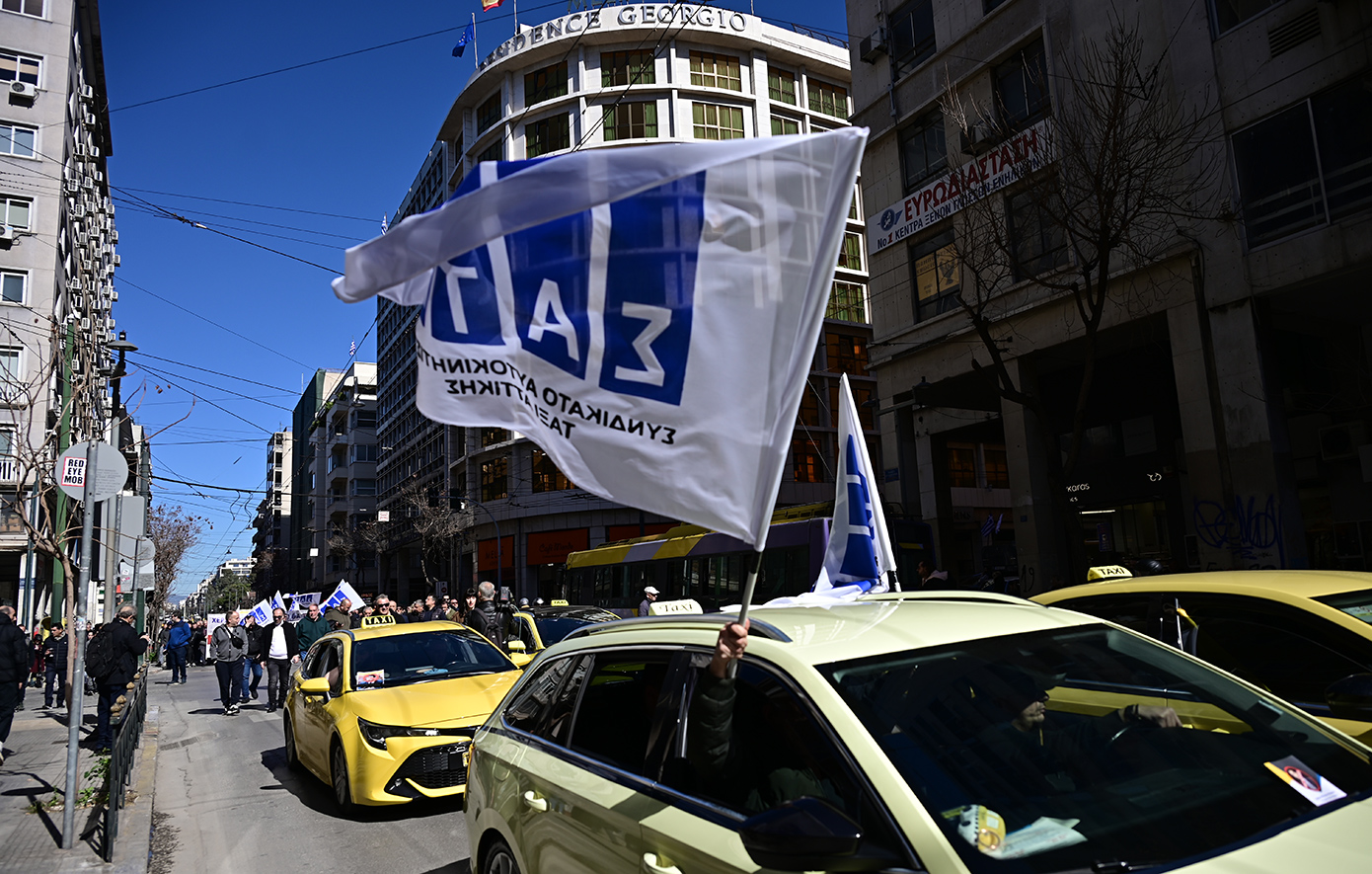 Με καπνογόνα, παλμό και βασικό σύνθημα «το ταξί είναι εδώ, ενωμένο δυνατό» οι αυτοκινητιστές πορεύτηκαν από τα γραφεία του ΣΑΤΑ, στη Μάρνη, προς τη Βουλή, μέσω της Σταδίου.