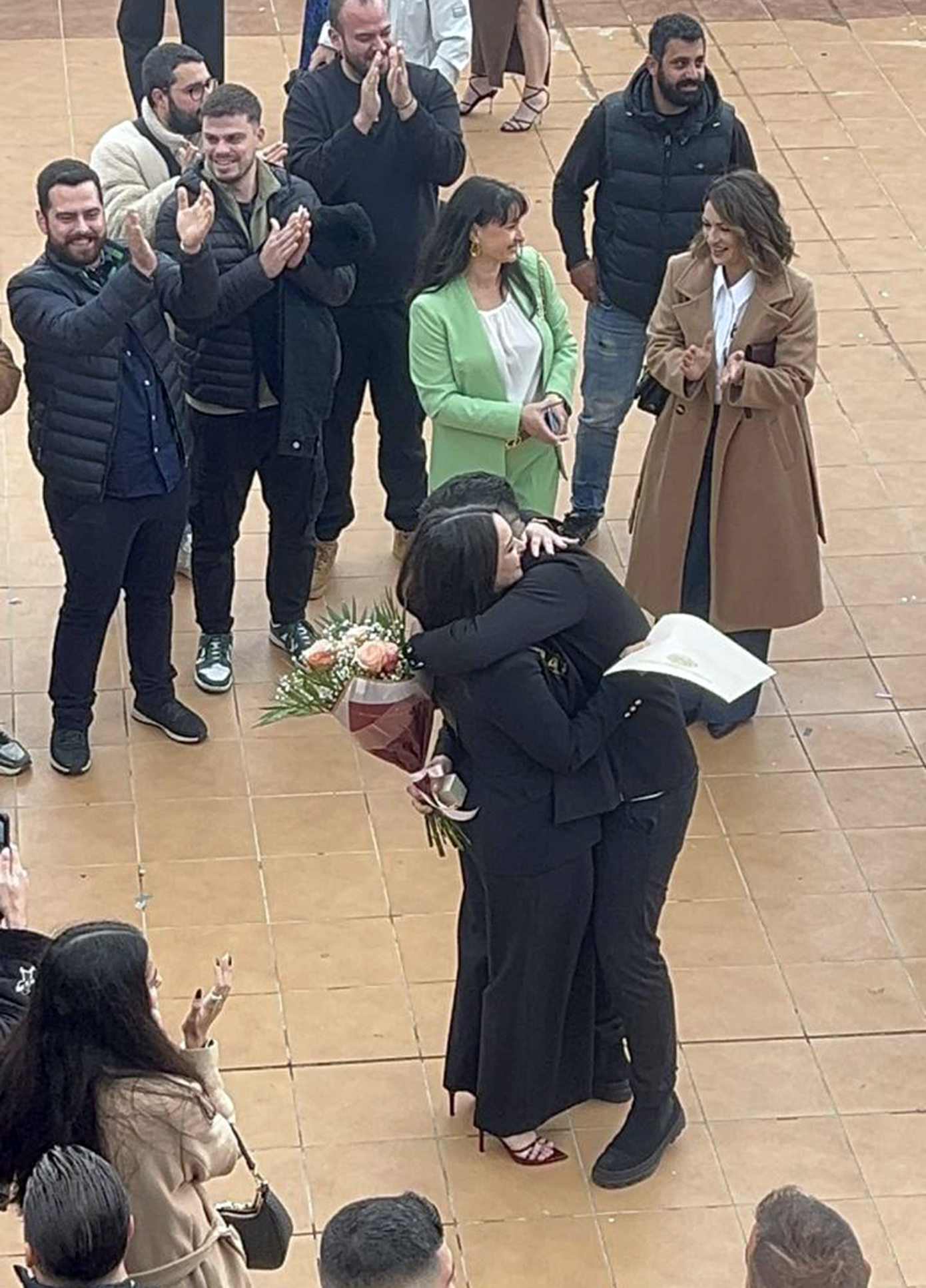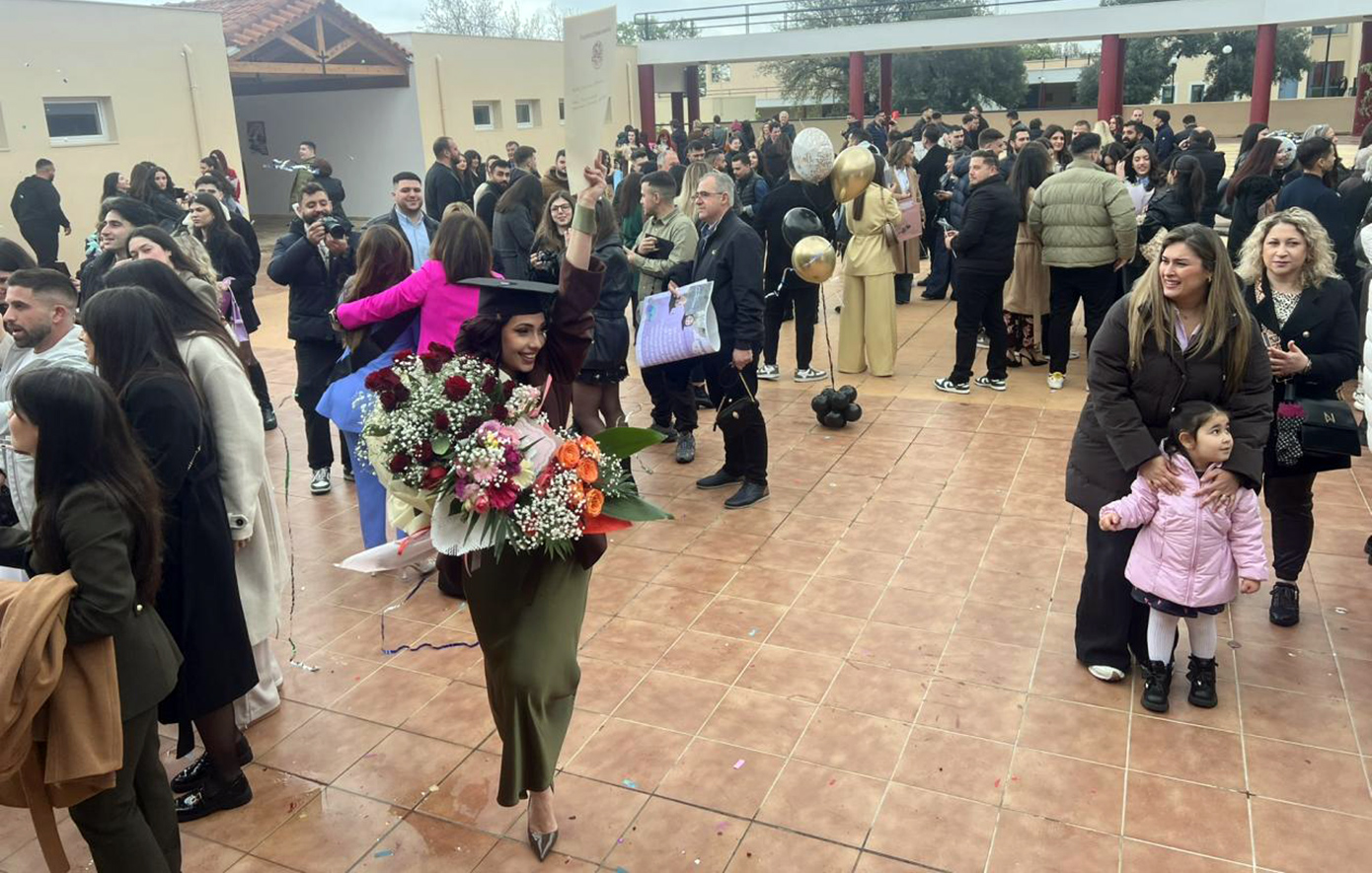 Η χαρά της ημέρας ήταν έτσι διπλή για τους φίλους και τους συγγενείς της Έλενας, αφού η νεαρή δεν έφυγε μόνο με πτυχίο στο χέρι αλλά και με μονόπετρο.