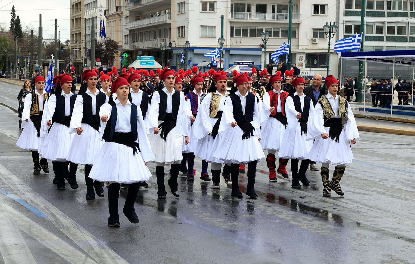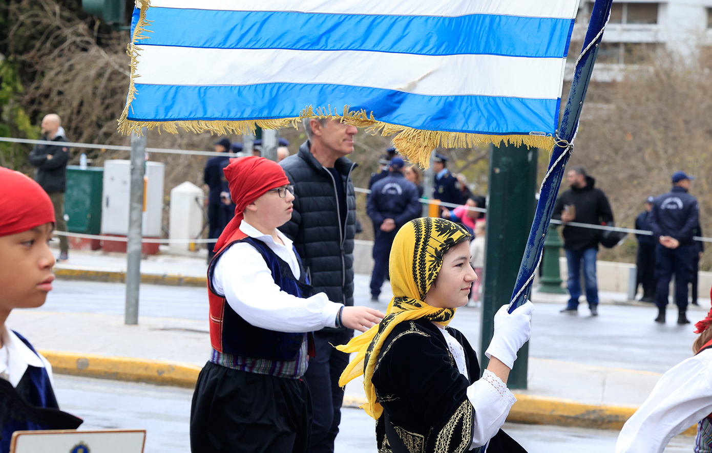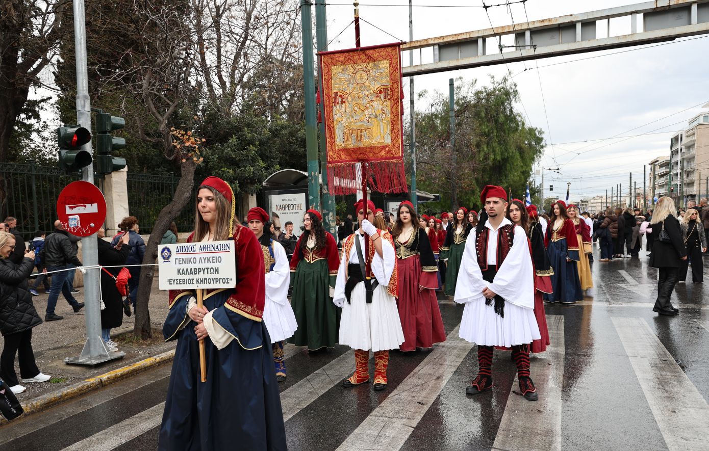 Αντιπροσωπευτικά τμήματα μαθητών και μαθητριών από όλα τα σχολεία του δήμου Αθηναίων παρέλασαν στο κέντρο της πόλης, περνώντας μπροστά από το μνημείο του Αγνώστου Στρατιώτη και το ελληνικό Κοινοβούλιο, συνοδεία της φιλαρμονικής ορχήστρας του δήμου Αθηναίων, ενώ παρέλασαν και οι μπάντες της Ελληνικής Αστυνομίας, της Πολεμικής Αεροπορίας και της Πυροσβεστικής.