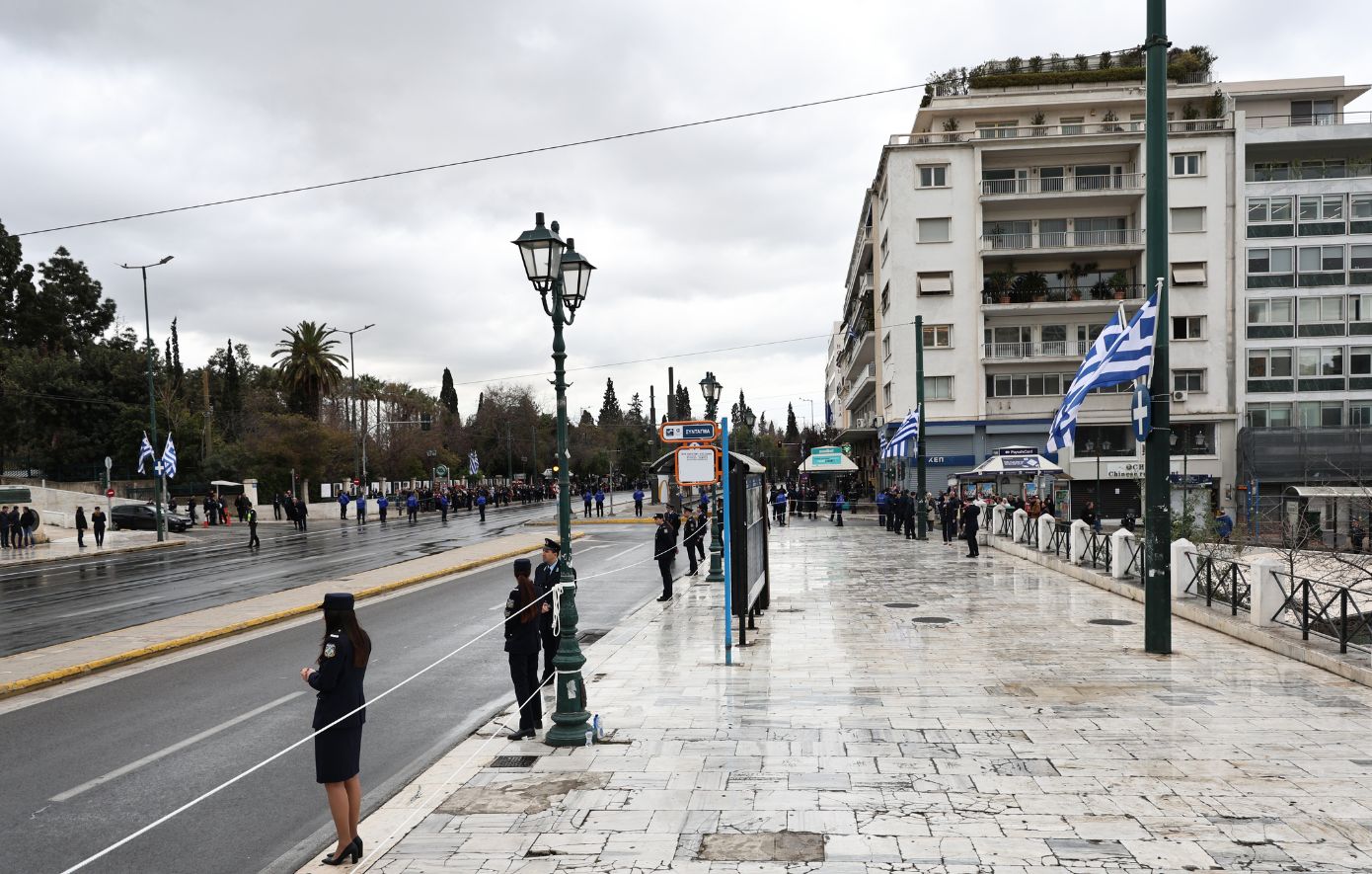 Σημειώνεται, τέλος, ότι τέθηκαν σε ισχύ στο κέντρο της Αθήνας κυκλοφοριακές ρυθμίσεις, οι οποίες ίσχυσαν έως το πέρας της παρέλασης. Η κυκλοφορία στους δρόμους του κέντρου της πόλης αποκαθίσταται σταδιακά, ενώ με εντολή της ΕΛ.ΑΣ. άνοιξε ο σταθμός του Μετρό «Σύνταγμα», ο οποίος ήταν κλειστός από τις 8:00 το πρωί, σύμφωνα με το ΑΠΕ-ΜΠΕ.