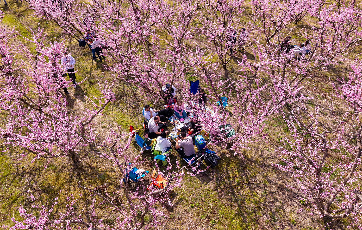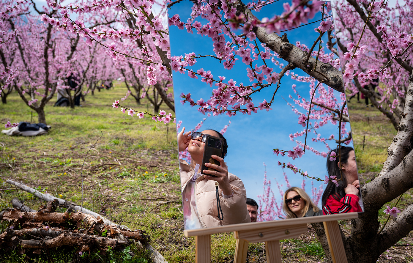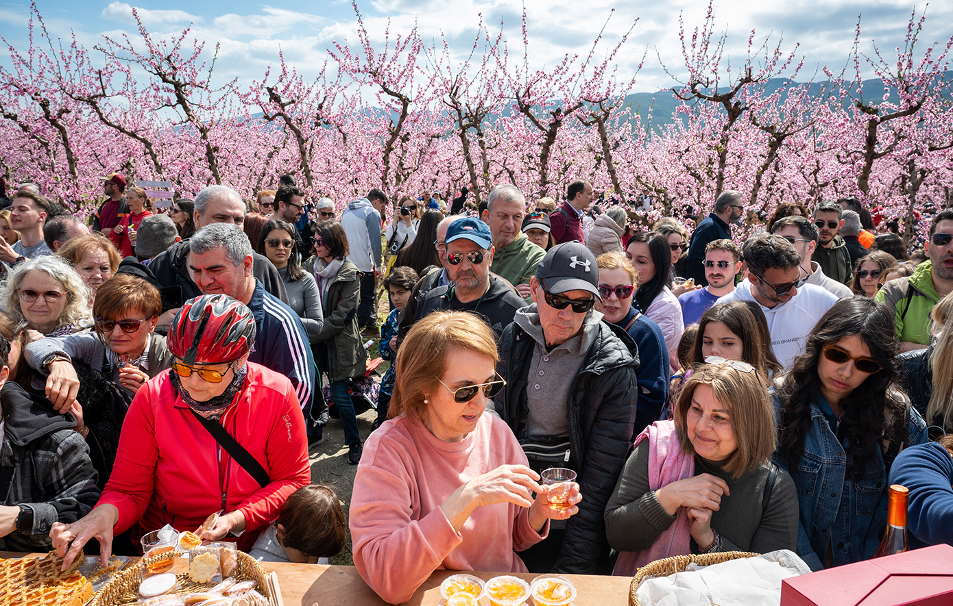Κατά τη διάρκεια δύο Σαββατοκύριακων, χιλιάδες επισκέπτες περιπλανήθηκαν ανάμεσα στις ανθισμένες ροδακινιές γύρω από τη Βέροια, που βρίσκεται 72 χιλιόμετρα δυτικά της δεύτερης μεγαλύτερης πόλης της Ελλάδας, της Θεσσαλονίκης, αναφέρει το Associated Press.