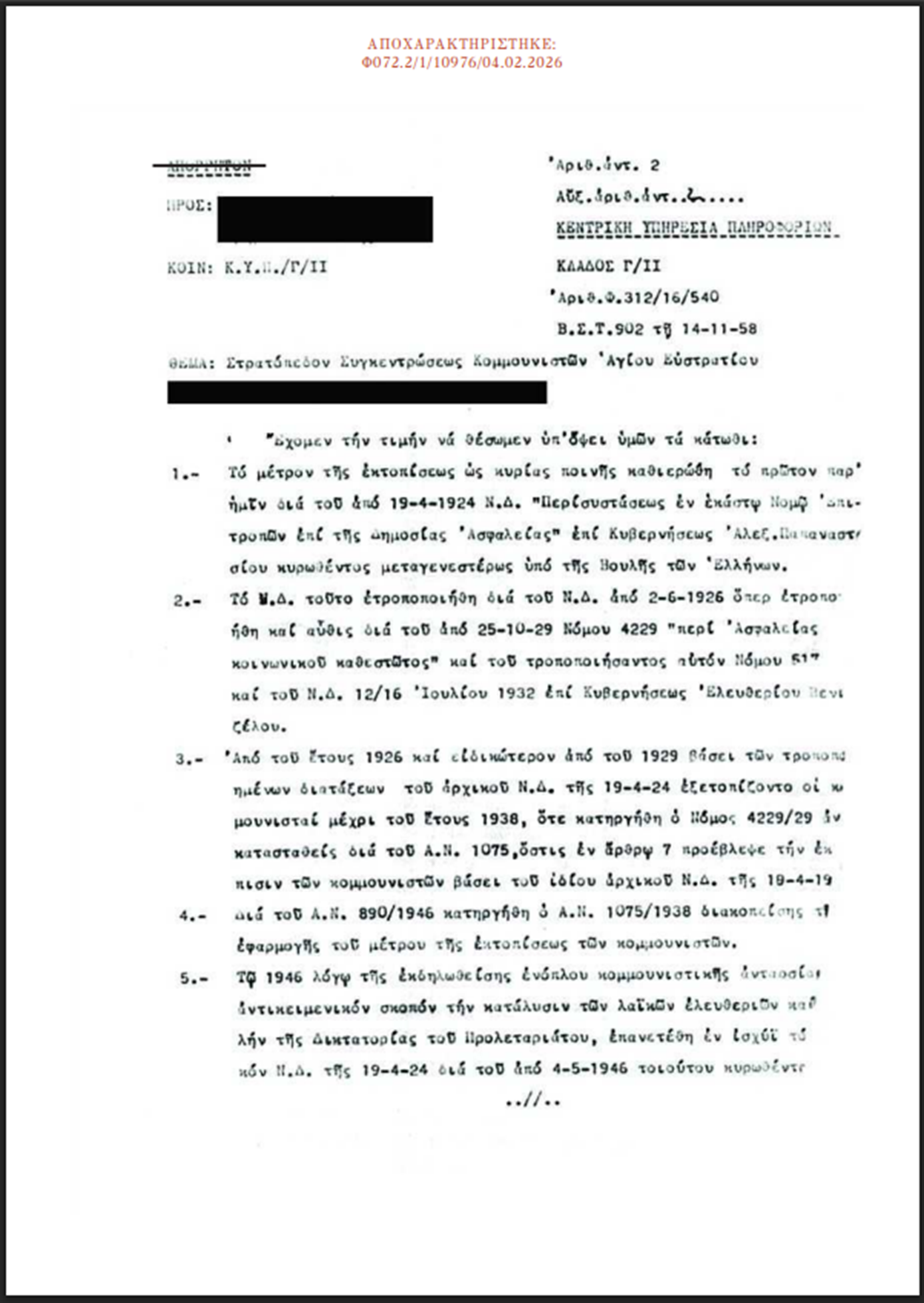 Η ΕΥΠ ανέφερε για τον αποχαρακτηρισμό: