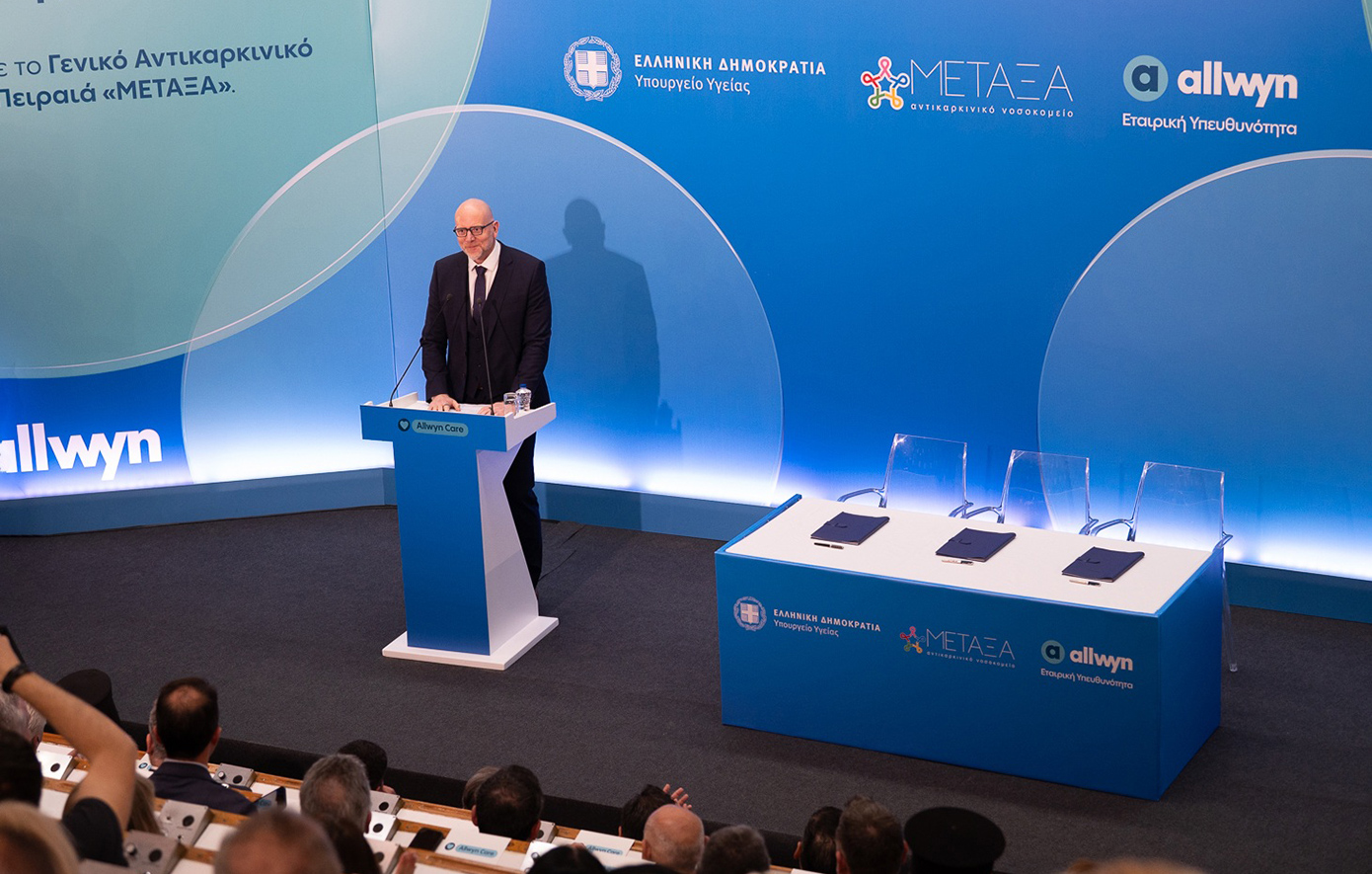 Ο Υπουργός Υγείας, Άδωνις Γεωργιάδης υπογράμμισε: «Η υπογραφή του Μνημονίου Συνεργασίας για την πλήρη ανακαίνιση του Γενικού Αντικαρκινικού Νοσοκομείου Πειραιά «ΜΕΤΑΞΑ» σηματοδοτεί ένα σημαντικό βήμα για την ενίσχυση του ΕΣΥ και, ειδικότερα, της ογκολογικής φροντίδας στη χώρα μας. Η συγκεκριμένη πρωτοβουλία αποδεικνύει στην πράξη τη δυναμική που μπορεί να αναπτυχθεί μέσα από τη συνεργασία δημόσιου και ιδιωτικού τομέα, με κοινό στόχο την αναβάθμιση των υπηρεσιών υγείας προς όφελος των πολιτών. Θέλω να ευχαριστήσω θερμά την Allwyn για τη σημαντική αυτή συμβολή, καθώς και τη διοίκηση και το προσωπικό του νοσοκομείου για το διαρκές έργο τους. Το Υπουργείο Υγείας θα συνεχίσει να στηρίζει κάθε πρωτοβουλία που ενισχύει τη δημόσια υγεία και αναβαθμίζει την καθημερινότητα των πολιτών».