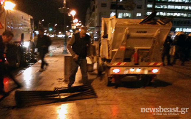 Τα συνεργεία του δήμου έχουν πιάσει δουλειά, για να καθαρίσουν το κέντρο της Αθήνας ύστερα από τα επεισόδια που σημειώθηκαν μετά την ογκώδη πορεία διαμαρτυρίας ενάντια στα μέτρα λιτότητας της κυβέρνησης.