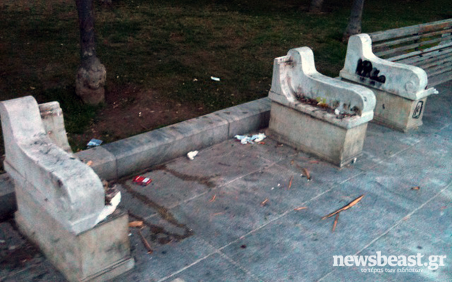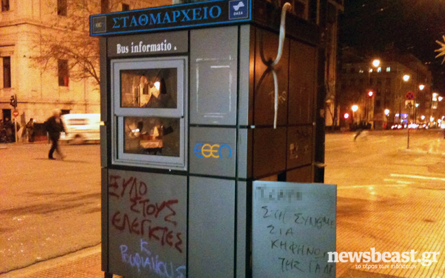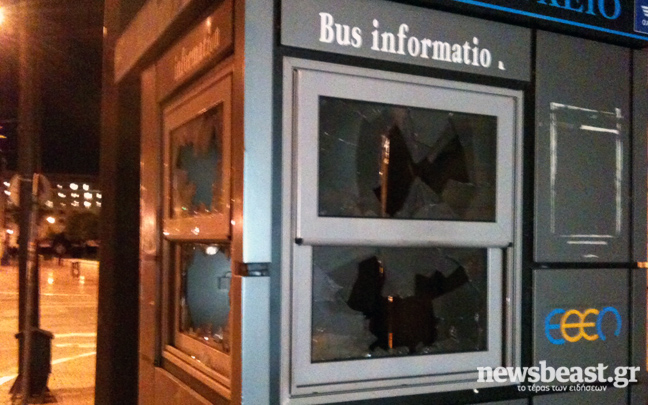 Δύο αστυνομικές μοτοσυκλέτες καμένες, αμέτρητοι κάδοι, σπασμένα παγκάκια, σπασμένα ΑΤΜ τραπεζών, στάσεις λεωφορείων, στάσεις μετρό και πλήθος άλλων βανδαλισμών είναι ο απολογισμός της σημερινής – μεγαλειώδους κατά τα άλλα – διαδήλωσης στην Αθήνα.