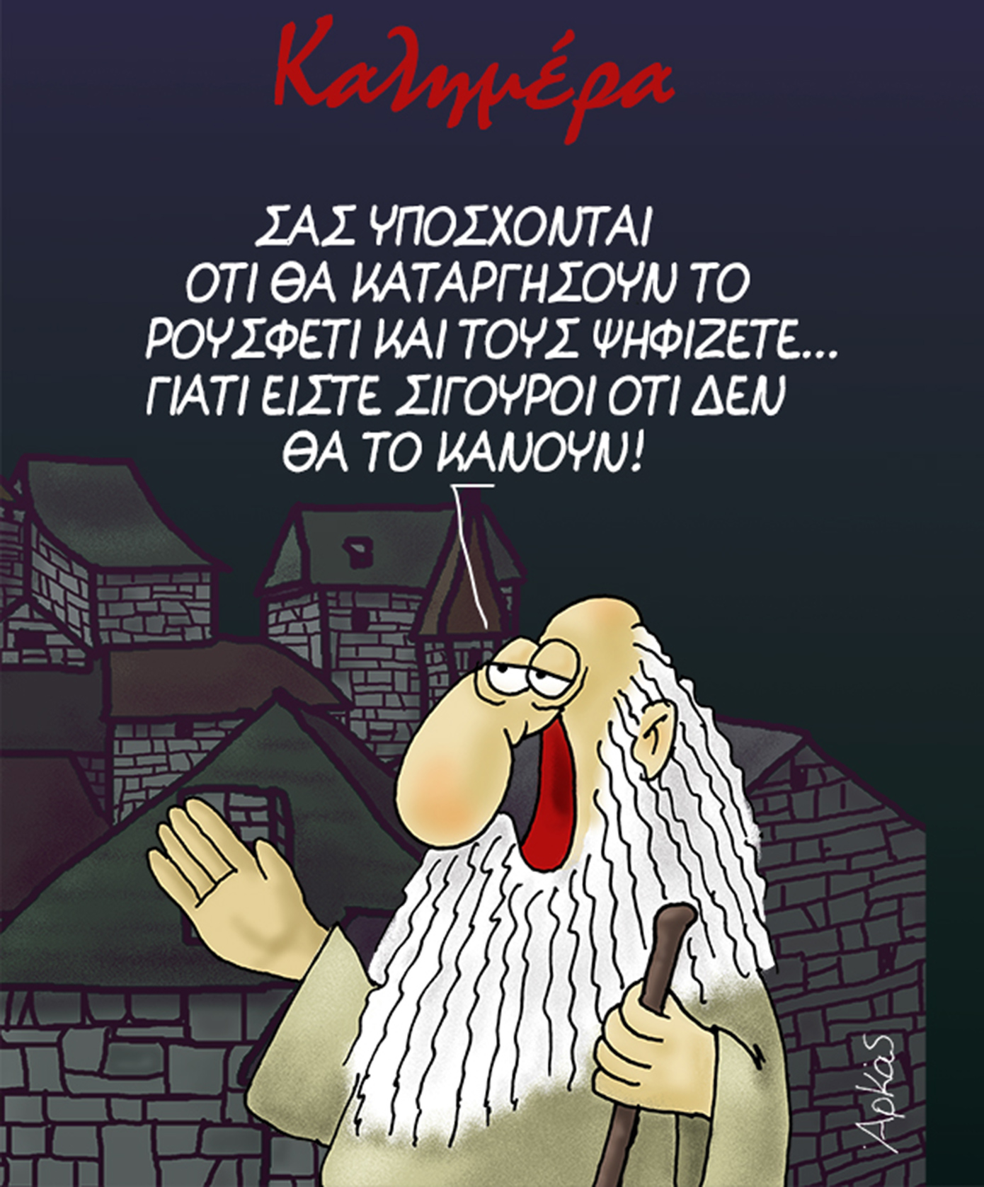 Την καθιερωμένη του «καλημέρα» μάς είπε σήμερα ο Αρκάς σχολιάζοντας την επικαιρότητα και τα δρώμενα στο πολιτικό σκηνικό της χώρας, με αφορμή την υπόθεση του ΟΠΕΚΕΠΕ.