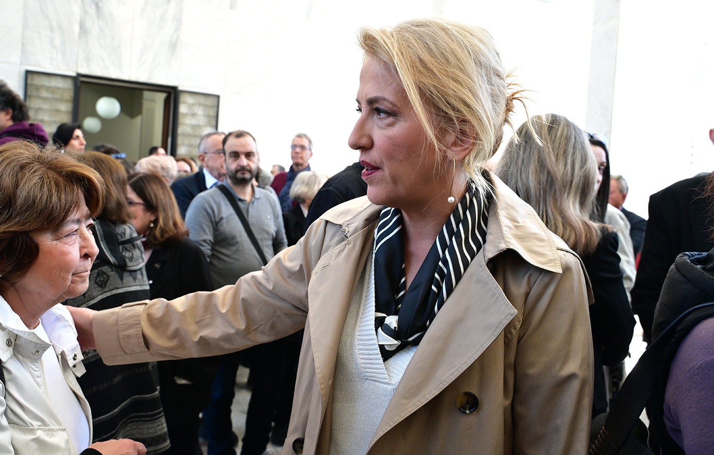 Η πρώην υπουργός του ΣΥΡΙΖΑ ήταν εμφανώς συγκινημένη στον αποχαιρετισμό του μονάκριβου γιου της ενώ συγκλονισμένοι ήταν ο γιος του και η σύντροφός του Μαρία.