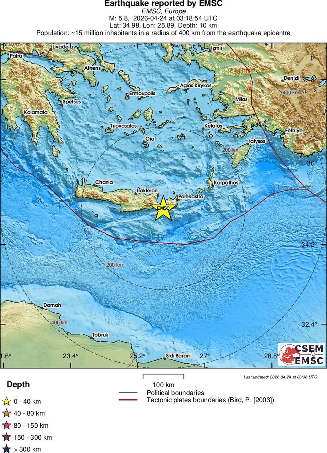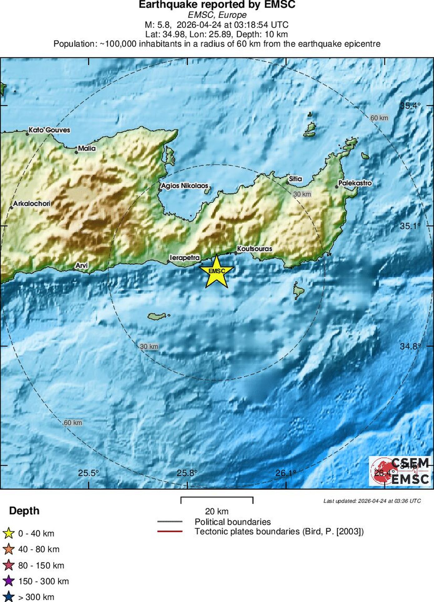 Είναι κοντά στη Χέρσο, πρέπει να έγινε ιδιαίτερα αισθητός σε όλο το Λασίθι και στην υπόλοιπη Κρήτη. Αυτή τη στιγμή υπολογίζεται το ακριβές μέγεθος και η ακριβής θέση, στα 5 χιλιόμετρα είναι επιφανειακός ο σεισμός, αλλά τα επιμέρους στοιχεία και τα ακριβή στοιχεία θα τα ξέρουμε σε λίγη ώρα».