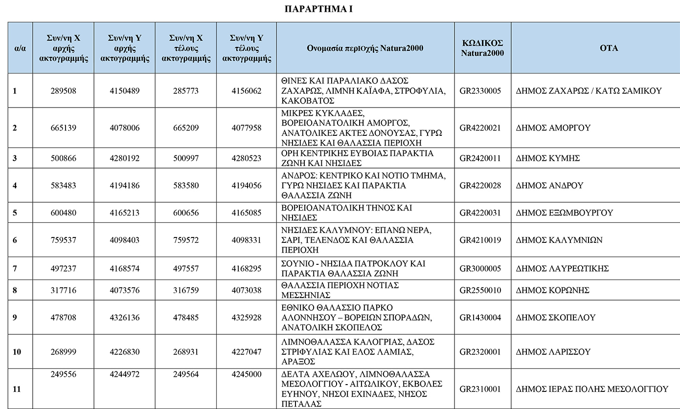 Κοινή Υπουργική Απόφαση ΚΥΑ με θέμα: «Τροποποίηση της υπ. αριθμ. ΥΠΕΝ/ΓΔΠΠ/35330/646/02.04.2024 Κοινής Υπουργικής Απόφασης “Όροι και περιορισμοί για τους αιγιαλούς και τις παραλίες υψηλής προστασίας (απάτητες παραλίες)” (Β’ 2364), όπως έχει τροποποιηθεί με την υπ. αριθμ. ΥΠΕΝ/Δ ΔΦΠΒ/68831/1806 (Β΄3734)», υπέγραψαν οι υπουργοί Εθνικής Οικονομίας και Οικονομικών, κ. Κυριάκος Πιερρακάκης και Περιβάλλοντος και Ενέργειας, κ. Σταύρος Παπασταύρου.