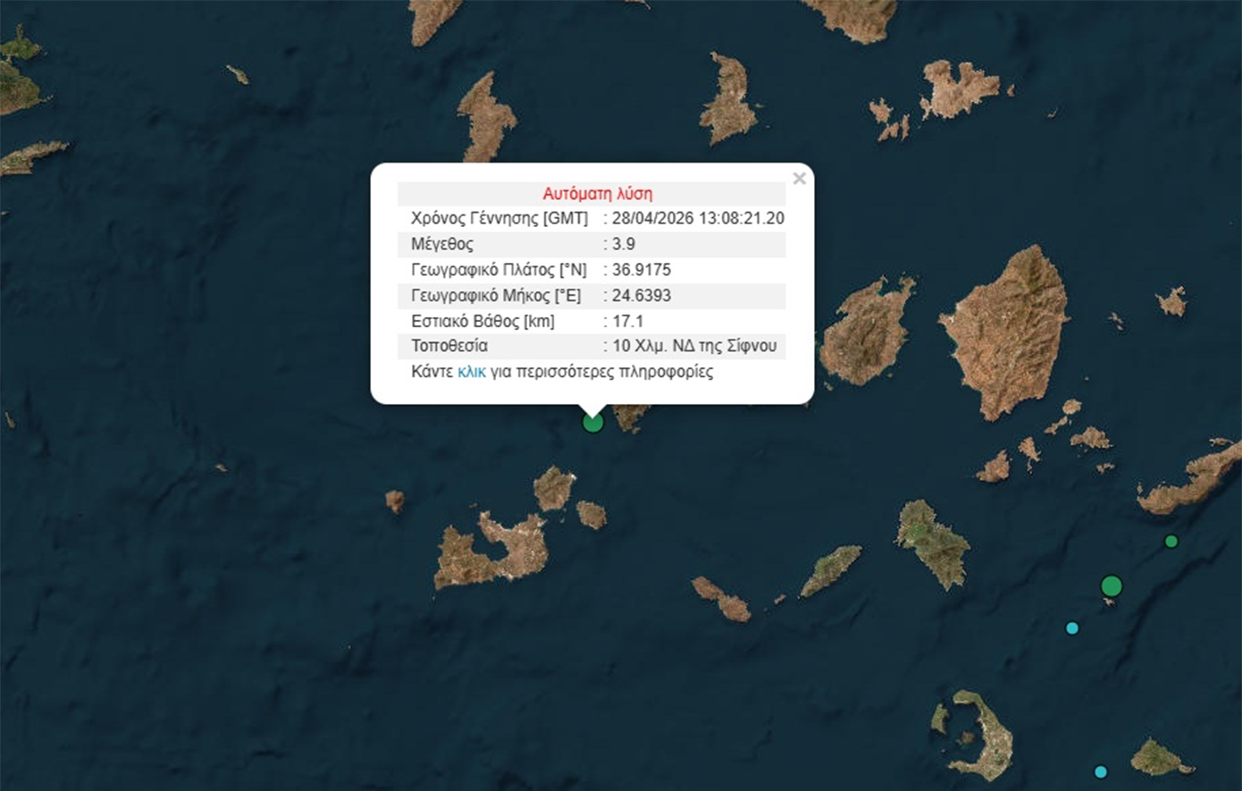 Μετά τις ισχυρές δονήσεις από το πρωί στη Σκιάθο, και μία νέα δόνηση έρχεται να εντείνει την ανησυχία, αλλά αυτή τη φορά το επίκεντρο ήταν η Σίφνος.