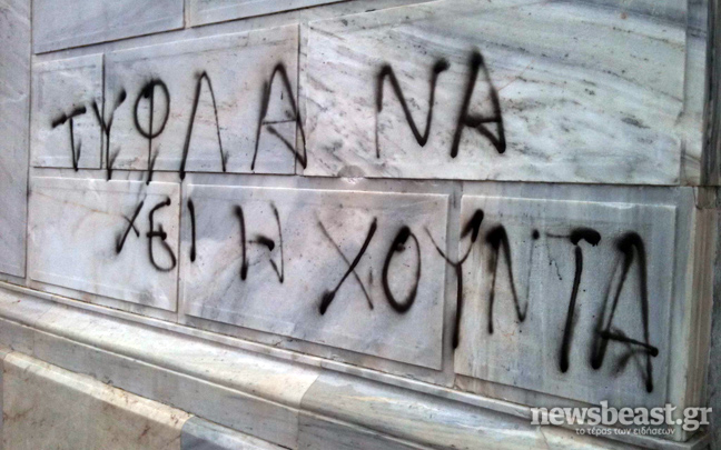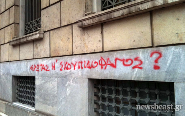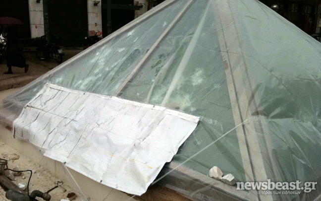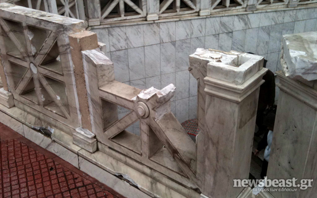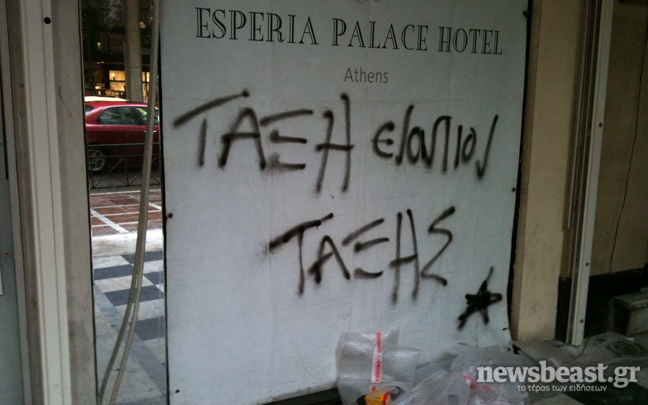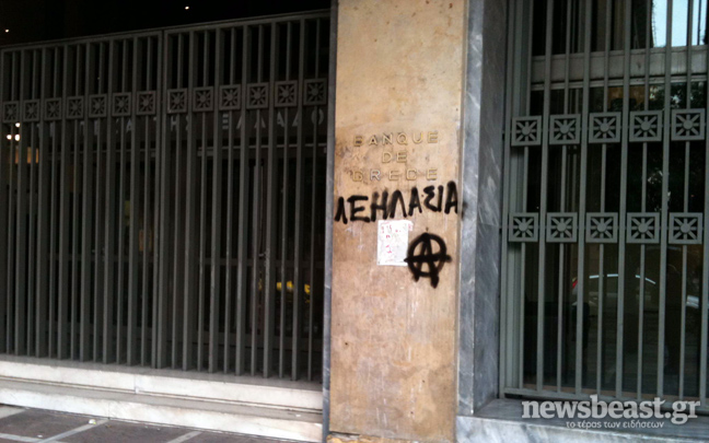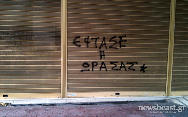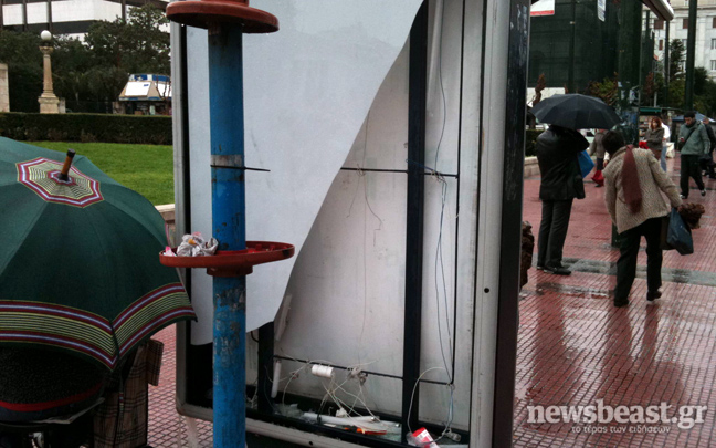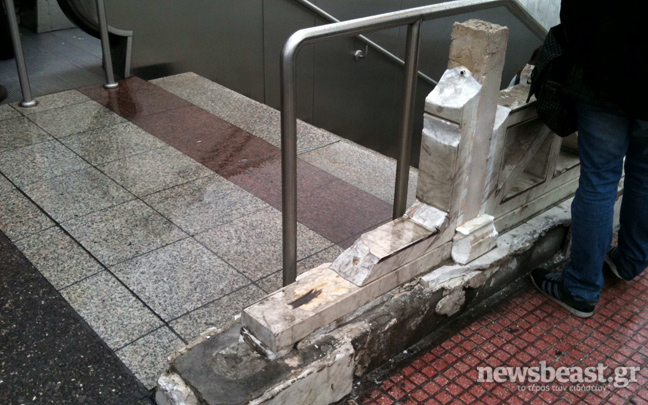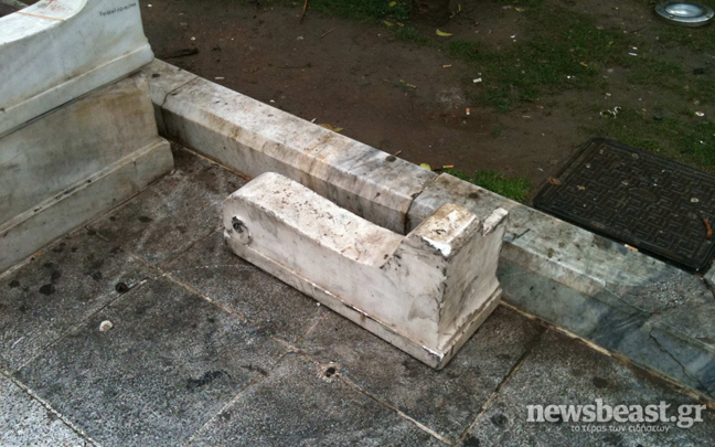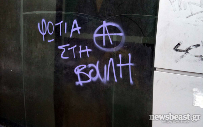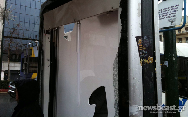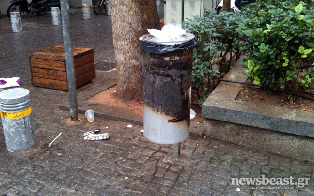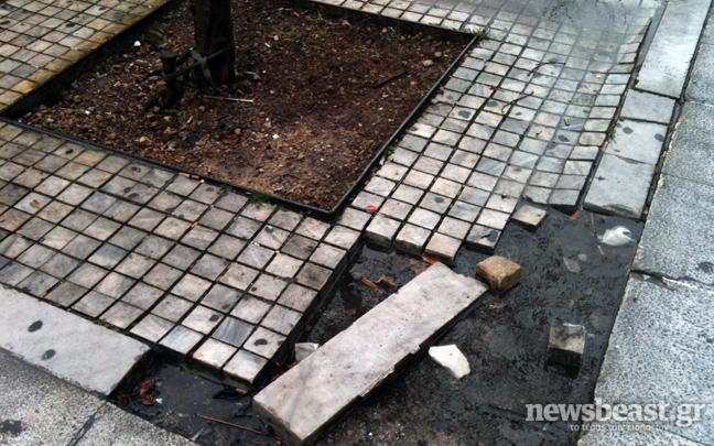 Παγκάκια που καταστράφηκαν ολοσχερώς, πεζοδρόμια που ξηλώθηκαν, στάσεις λεωφορείων και κάδοι που βρέθηκαν στο έλεος των ταραξιών, καταστήματα και τράπεζες με φθορές, μικρές ή μεγάλες, και πολλά συνθήματα στους τοίχους, συνθέτουν το σκηνικό της χτεσινής βίας.