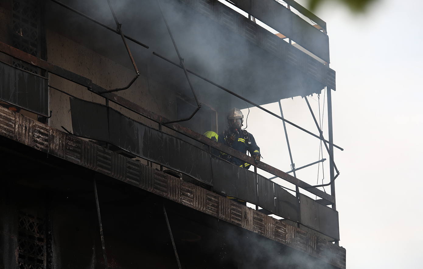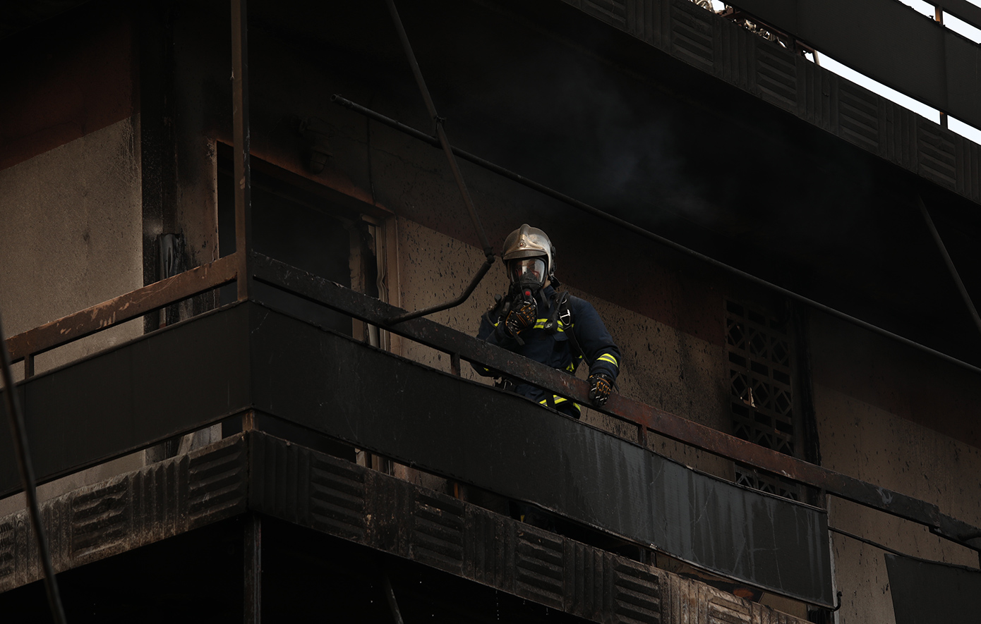 Συγκλονίζει και η μαρτυρία για έναν νεαρό ιδιοκτήτη που βρισκόταν μέσα στο φλεγόμενο κτίριο και προσπαθούσε με λυγμούς να σώσει ό,τι μπορούσε από την περιουσία του. Η απόγνωσή του αποτυπώνει το μέγεθος της τραγωδίας καθώς έβλεπε τους κόπους του να χάνονται.