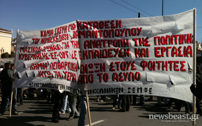 Κλειστή είναι αυτή την ώρα η Πανεπιστημίου, λόγω της πορείας που πραγματοποιούν οι καθηγητές Μέσης Εκπαίδευσης.