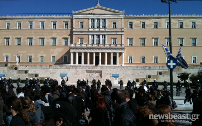 Στη Βουλή βρίσκονται αυτή την ώρα οι εκπαιδευτικοί, οι οποίοι πραγματοποιούν συγκέντρωση διαμαρτυρίας για την εκπαιδευτική μεταρρύθμιση και για τα οικονομικά μέτρα της κυβέρνησης που πλήττουν τους ίδιους και το χώρο της παιδείας γενικότερα.