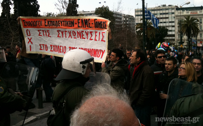 Συγκέντρωση διαμαρτυρίας ενάντια στις συγχωνεύσεις των σχολείων πραγματοποιούν αυτή την ώρα στο κέντρο της Αθήνας εκπαιδευτικοί, γονείς και μαθητές.