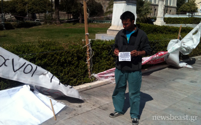 Περίπου 300 άτομα, μετά το τέλος της παρέλασης, κατευθύνθηκαν στα Προπύλαια όπου κυνήγησαν τους μετανάστες αφού πρώτα κατέστρεψαν τα πανό που είχαν αναρτήσει και στα οποία έγραφαν τα αιτήματά τους.