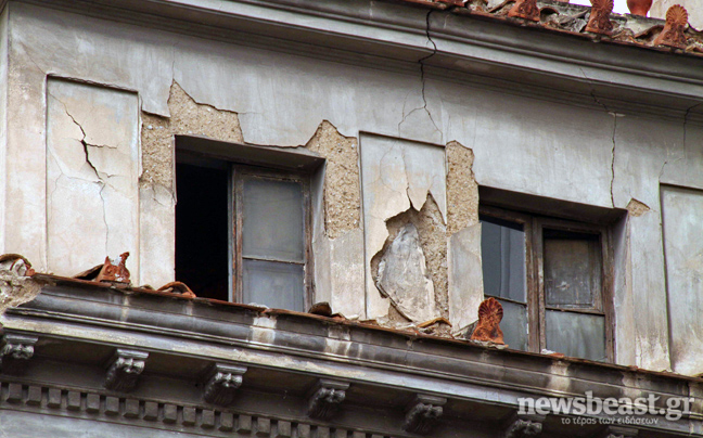 Κατεστραμμένες στέγες, ετοιμόρροπα μπαλκόνια και τοίχοι που σχεδόν γέρνουν πάνω από τα κεφάλια των περαστικών είναι εικόνες πραγματικές και καθημερινές που οι περισσότεροι ξεχνάμε ή αγνοούμε χαμένοι μέσα στους ταχύτατους ρυθμούς ζωής της πόλης.
