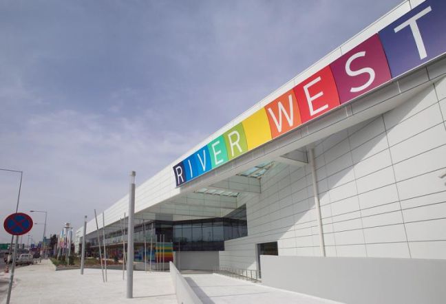 Στο River West μπορείτε να βρείτε καταστήματα όπως H&M, Μουστάκας, Carrefour-Μαρινόπουλος, NEXT, Intersport, Adidas, Galerie de Beauté, Mayoral, Oxette-Loisir, Peacocks, Bata, Coffeeway, Du Pareil au même, Hunter, Bijou Brigitte, Man & Manetti, Carven Paris, Camicissima, Vertice και Body Talk. Για καφέ και φαγητό μπορείτε να επιλέξετε τα Il Barretto και Politia Café, ενώ υπηρεσίες ομορφιάς και περιποίησης προσφέρει το κατάστημα Fairynails-Fairyhair.