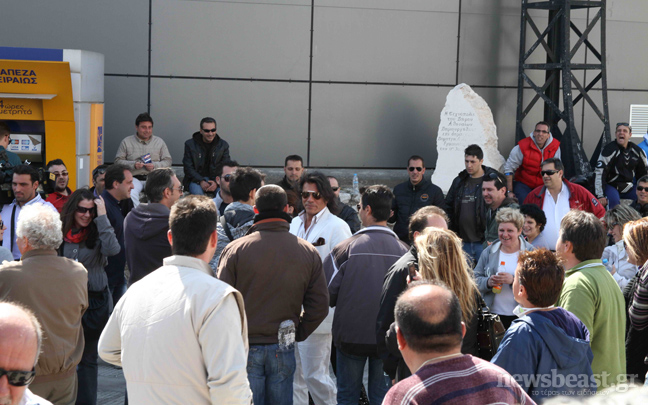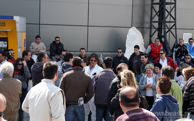 Νωρίτερα, σημειώθηκε ένταση μεταξύ αστυνομικών και συμβασιούχων στο προαύλιο του κτιρίου.