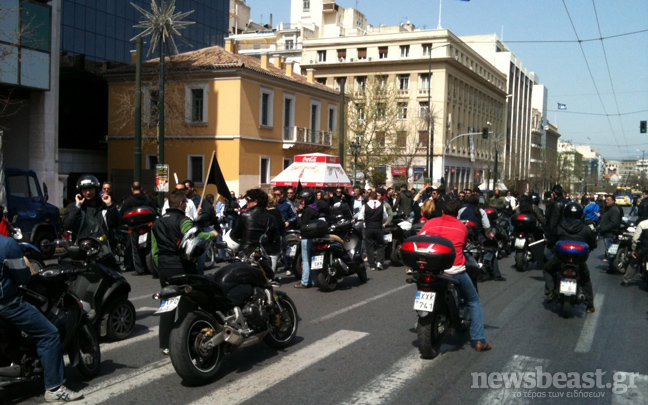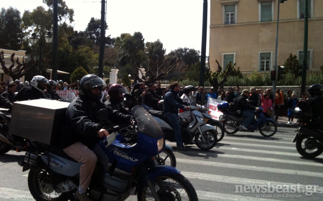 Χάος επικρατεί αυτή τη στιγμή στους δρόμους της Αθήνας, από τους συμβασιούχους που κάνουν κύκλους με τις μηχανές στο κέντρο.