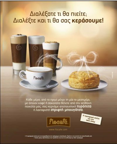 Πέρυσι το καλοκαίρι εγκαινίασαν το πρωινό κέρασμα, που βρήκε μεγάλη ανταπόκριση από τους πελάτες των Flocafé και συνεχίζεται μέχρι σήμερα με επιτυχία. Έτσι, κάθε μέρα από το πρωί μέχρι και τη 13.00, παραγγέλνοντας καφέ ή σοκολάτα μέσα από μία μεγάλη ποικιλία ροφημάτων, τα Flocafé σας κερνάνε μία απολαυστική τυρόπιτα ή μια χορταστική στριφτή μπουγάτσα. Το κέρασμα ισχύει και για take away.