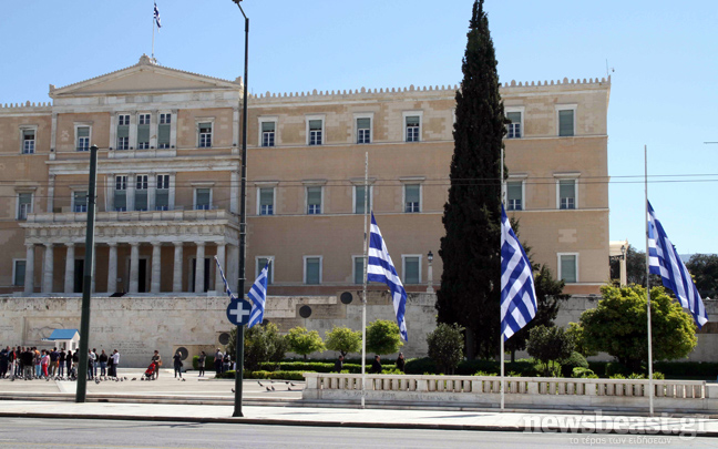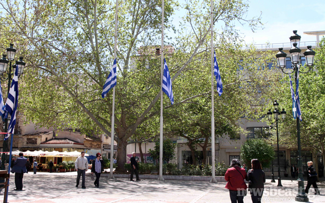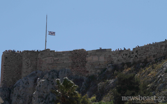 Αντίθετα στο βράχο της Ακρόπολης η σημαία κυμάτιζε από το πρωί μεσίστια.