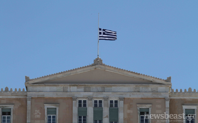 Τελικά λίγο πριν την 13:00 ίσως γιατί κάποιος τους ειδοποίησε, ίσως γιατί τότε έφτασε ο αρμόδιος υπάλληλος, ίσως πάλι γιατί είδαν τις σημαίες στα ξενοδοχεία απέναντι, κάποιος ανέλαβε και έβαλε μεσίστια τη σημαία στην κορυφή της Βουλής, ενώ μάλλον από υπερβάλλοντα ζήλο σχεδόν κατέβασε τη σημαία στο υπουργείο Οικονομικών.