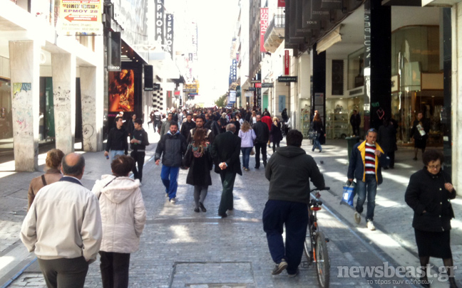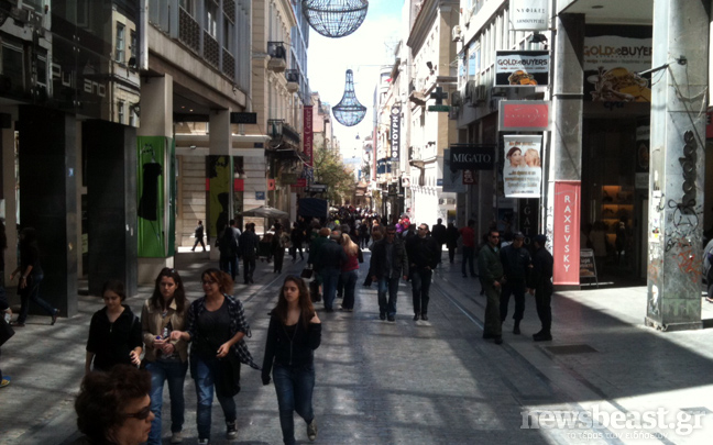 Την «τιμητική» της είχε η οδός Ερμού, η οποία γέμισε από κόσμο ο οποίος ωστόσο έμεινε στο να κοιτάει μόνο τις βιτρίνες…