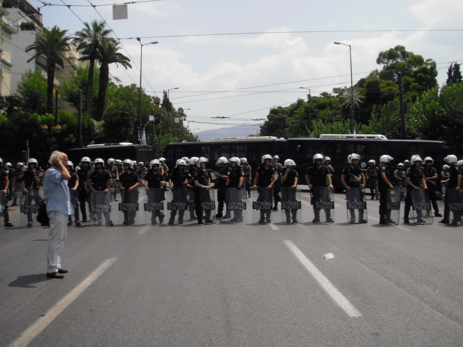 Έξω από τη Βουλή βρίσκονται συγκεντρωμένοι οι εργαζόμενοι στο δημόσιο τομέα ενώ στο Κοινοβούλιο συζητείται το ασφαλιστικό νομοσχέδιο.