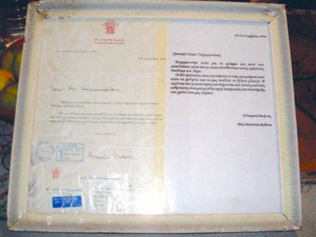 Λίγο καιρό μετά έφτασε στο Ζαρό μία ευχαριστήρια επιστολή με την υπογραφή της υπεύθυνης του Γραφείου του Πρίγκιπα της Ουαλίας, με ημερομηνία 10 Σεπτεμβρίου 1998.