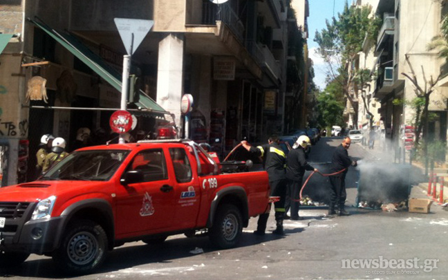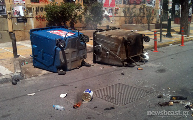 Οι ομάδες των γνωστών αγνώστων προξένησαν ζημιές σε σταθμευμένα αυτοκίνητα, έκαψαν κάδους και στη συνέχεια διαλύθηκαν στα γύρω στενά. Στο σημείο έφτασαν δυνάμεις της πυροσβεστικής για να σβήσουν τις εστίες της φωτιάς.
