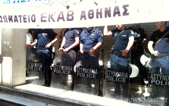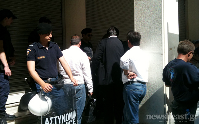 Οι περίπου 200 συγκεντρωμένοι βρίσκονται στην είσοδο του κτιρίου ενώ έχει διακοπεί η κυκλοφορία στην Αριστοτέλους, στο ύψος του υπουργείου.