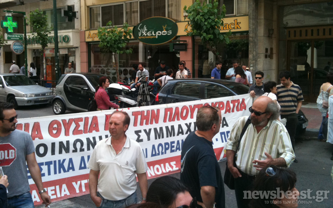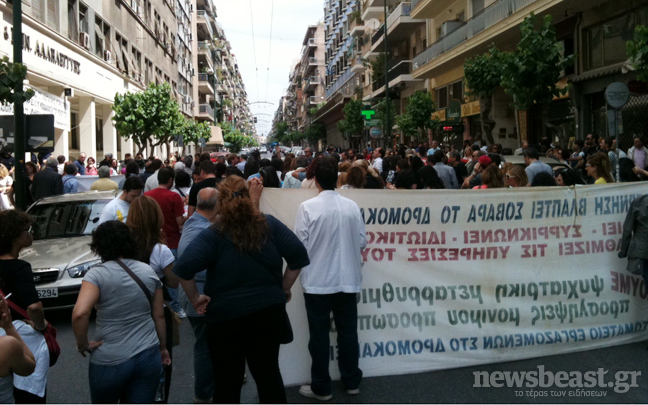 Έξω από το υπουργείο Υγείας στην οδό Αριστοτέλους βρίσκονται συγκεντρωμένοι εργαζόμενοι στα δημόσια νοσοκομεία διεκδικώντας την καταβολή δεδουλευμένων από υπερωριακή εργασία των τελευταίων έξι μηνών.