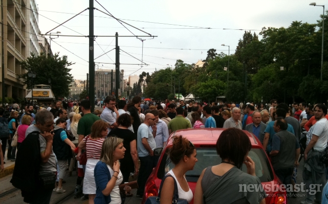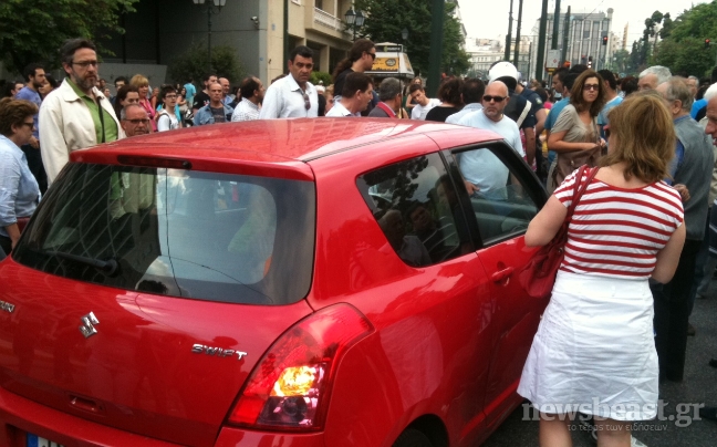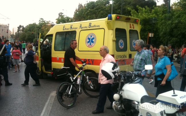 Ατύχημα σημειώθηκε στη Λεωφόρο Αμαλίας όταν ηλικιωμένη γυναίκα που οδηγούσε ένα κόκκινο αυτοκίνητο αγνοώντας το συγκεντρωμένο πλήθος μπροστά από τη Βουλή, επιχείρησε να περάσει με αποτέλεσμα να τραυματίσει μια κοπέλα στο πόδι.