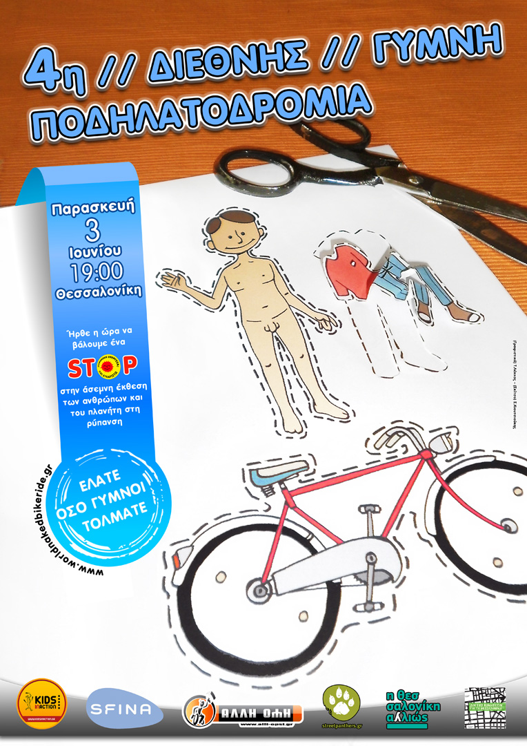 Η απόλυτα ειρηνική γιορτή για την προώθηση του ποδηλάτου ως μέσου μετακίνησης ενάντια στην κουλτούρα του αυτοκινήτου και την ρύπανση που δημιουργεί, για την απεξάρτηση μας από το πετρέλαιο και τις μη ανανεώσιμες πηγές ενέργειας, για τον άνθρωπο και το περιβάλλον, για την απ-ενοχοποίηση του φυσικού γυμνού μας σώματος.