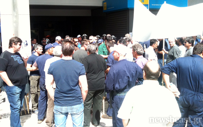 Αποκλεισμένος είναι αυτή την ώρα ο δρόμος μπροστά από το υπουργείο Οικονομικών, στη οδό Νίκης, λόγω της συγκέντρωσης των εργαζομένων στα ναυπηγεία Ελευσίνας και στα Τουριστικά Ακίνητα.