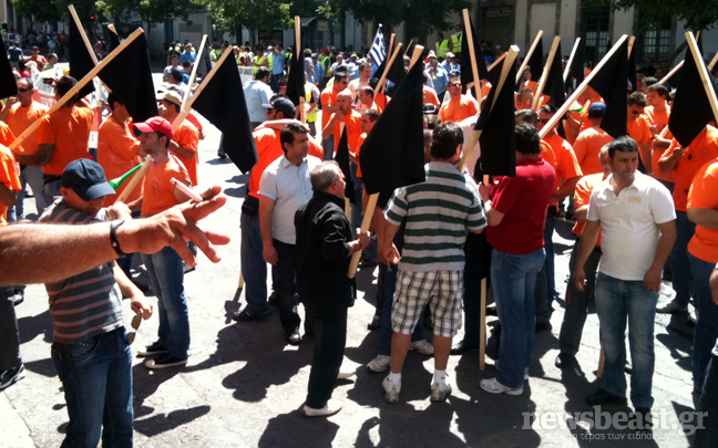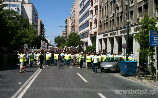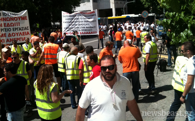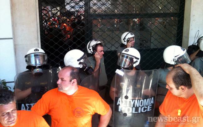 Ανέβηκαν οι τόνοι στο υπουργείο Εργασίας όπου συγκεντρώθηκαν πριν λίγο οι φορτοεκφορτωτές. Η ένταση μεταξύ των διαδηλωτών και των δυνάμεων των ΜΑΤ που είχαν παραταχθεί στην είσοδο του υπουργείου κλιμακώθηκε όταν οι φορτοεκφορτωτές επιχείρησαν να μπουν στο υπουργείο και έγινε χρήση χημικών για την απομάκρυνση των συγκεντρωμένων.