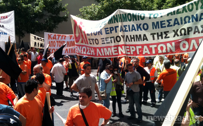 Οι φορτοεκφορτωτές αντιδρούν στο άνοιγμα του επαγγέλματός τους και ανέβηκαν έως το υπουργείο Εργασίας ζητώντας συνάντηση με την υπουργό Λούκα Κατσέλη.